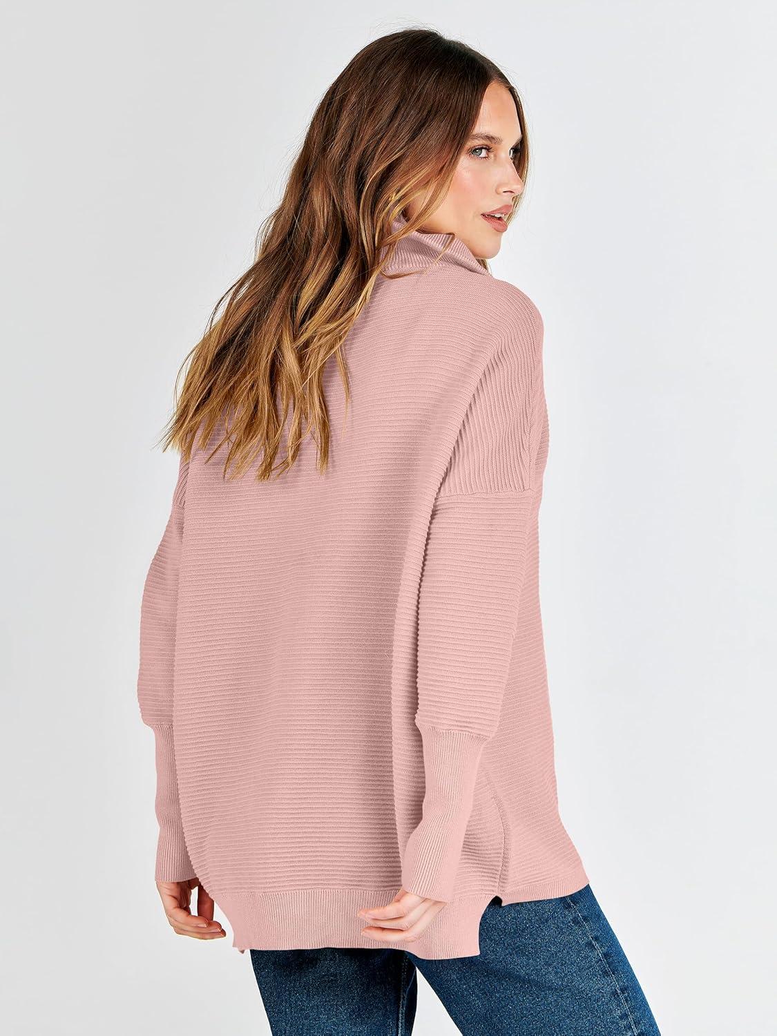 ANRABESS Women Quarter Zip Oversized Casual Loose Rib Knit Cozy Pullover Sweaters Top 2025 Fall Fashion Outfits Clothes(Pink)