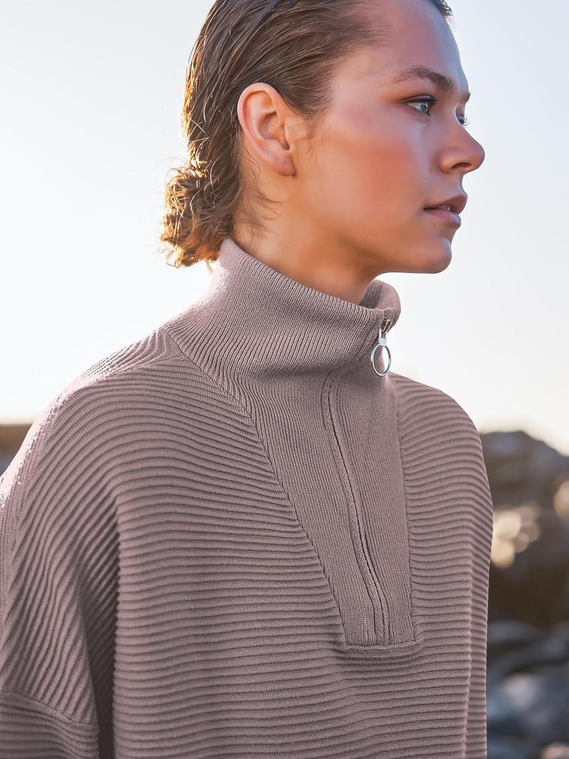 imageANRABESS Women Quarter Zip Oversized Casual Loose Rib Knit Cozy Pullover Sweaters Top 2025 Fall Fashion Outfits ClothesRust