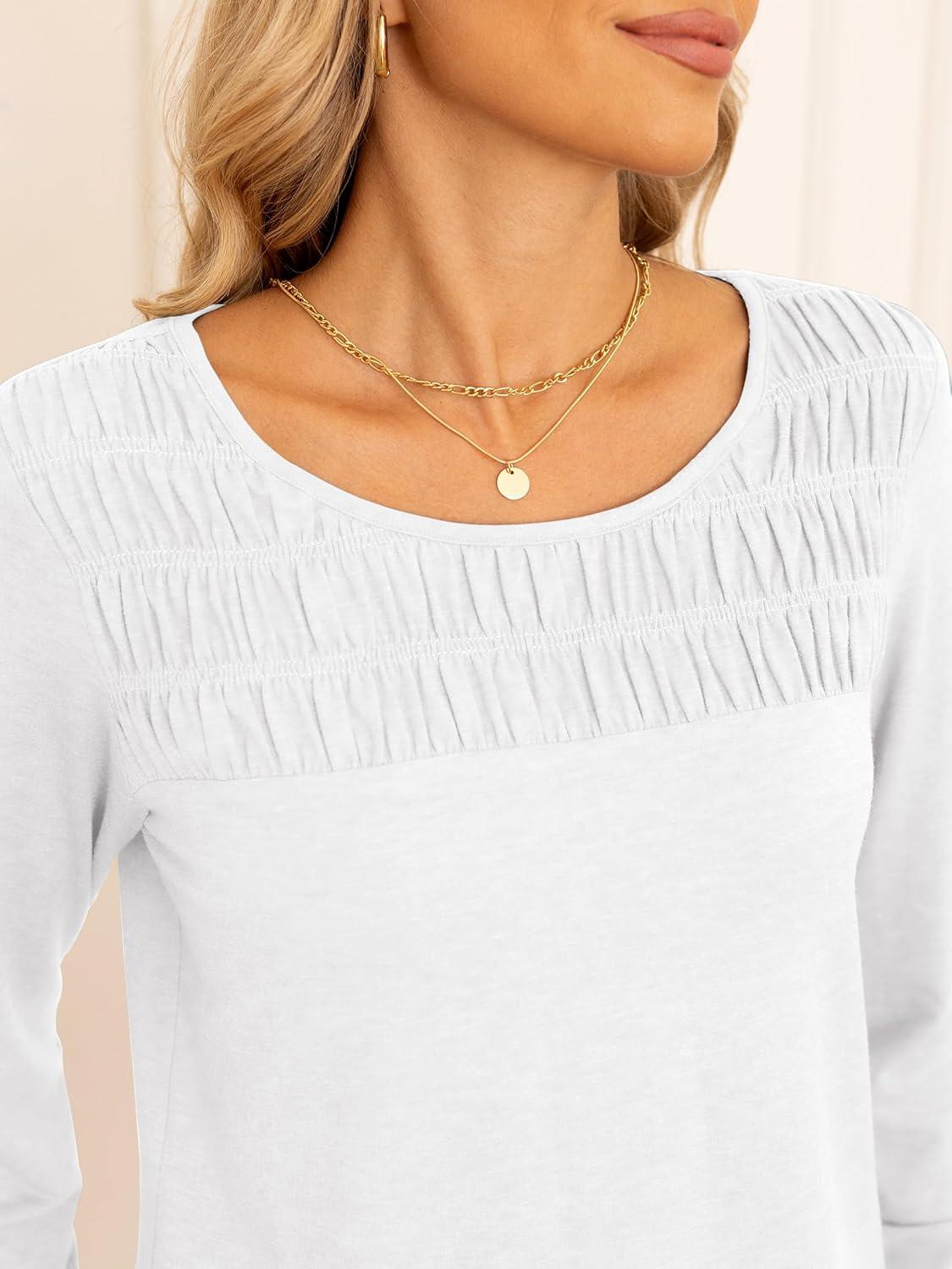 ANRABESS Women Shirts Long Sleeve Crewneck Smocked Tunic Tops with Leggings Dressy Casual T-Shirt Business Work Blouses(White)