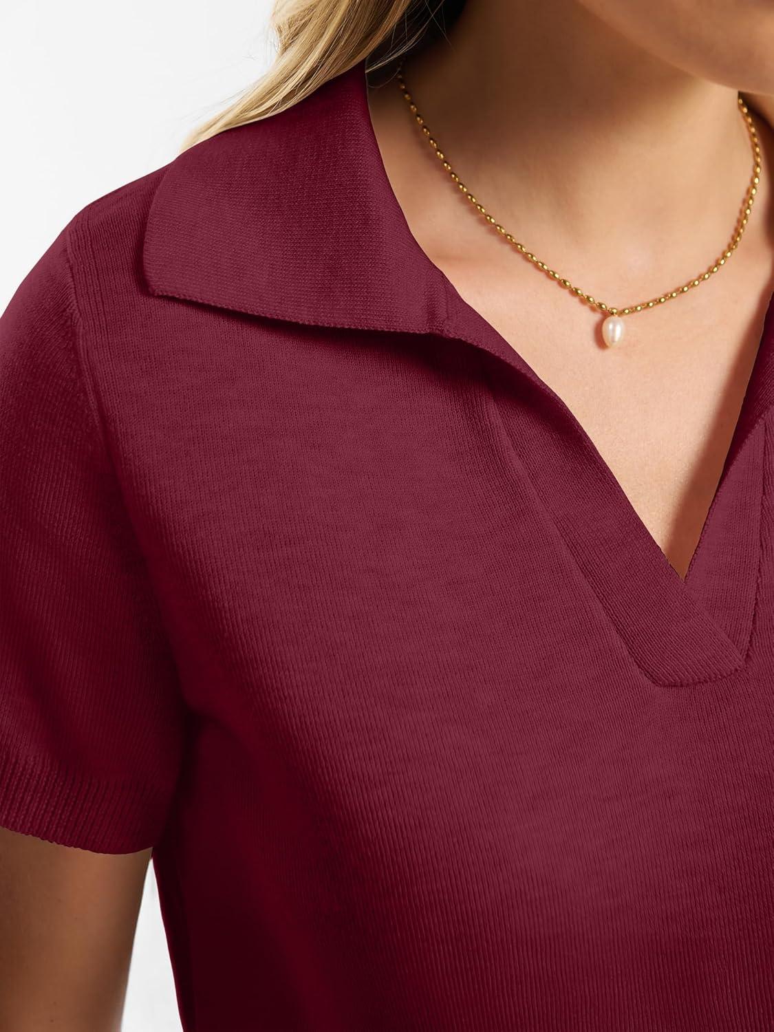 imageANRABESS Women Short Sleeve Sweater Wool Blend Polo V Neck Shirts Summer Dressy Top Business Casual Spring Vacation ClothesWine Red