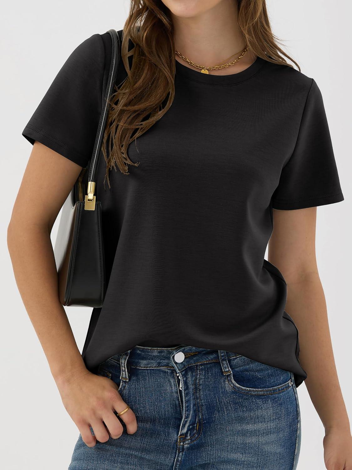 ANRABESS Women Short Sleeve Tops Summer Basic Tee Wrinkle-Free Trendy Cute T Shirts 2026 Spring Business Casual Outfits(Black)