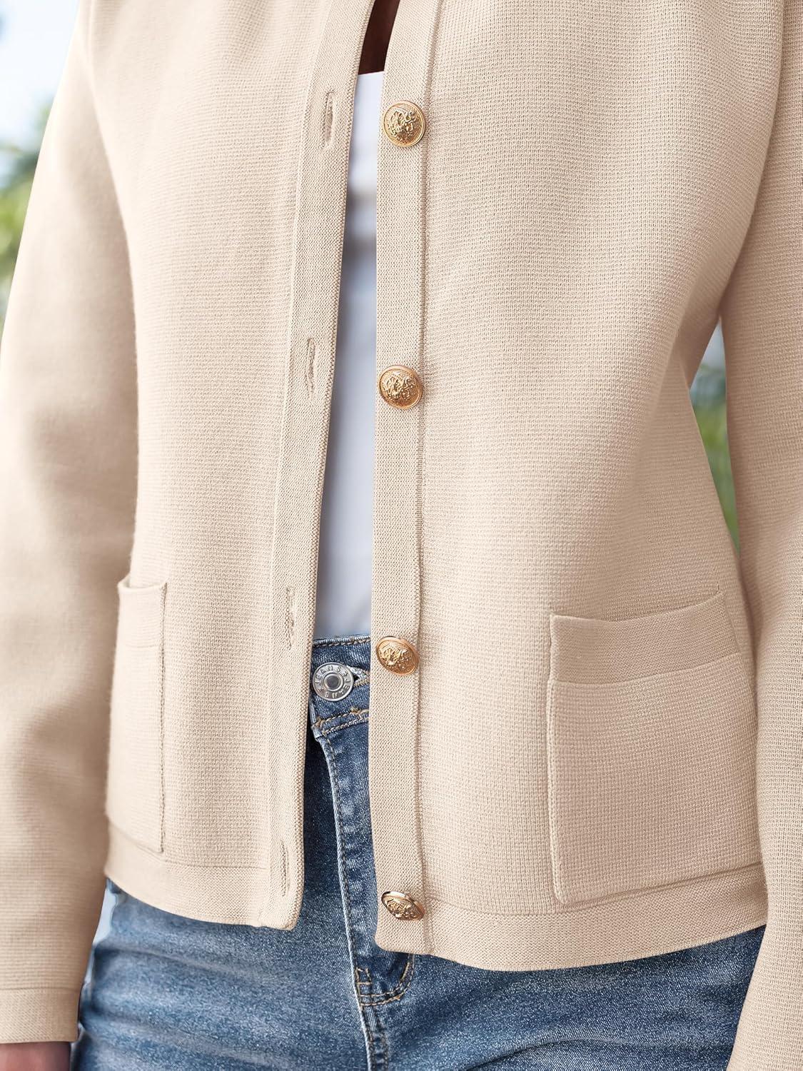 ANRABESS Women Striped Cardigan Sweaters Button Down Cropped Knit Lady Jackets Coat 2025 Fall Outfits Trendy Clothes(Khaki)