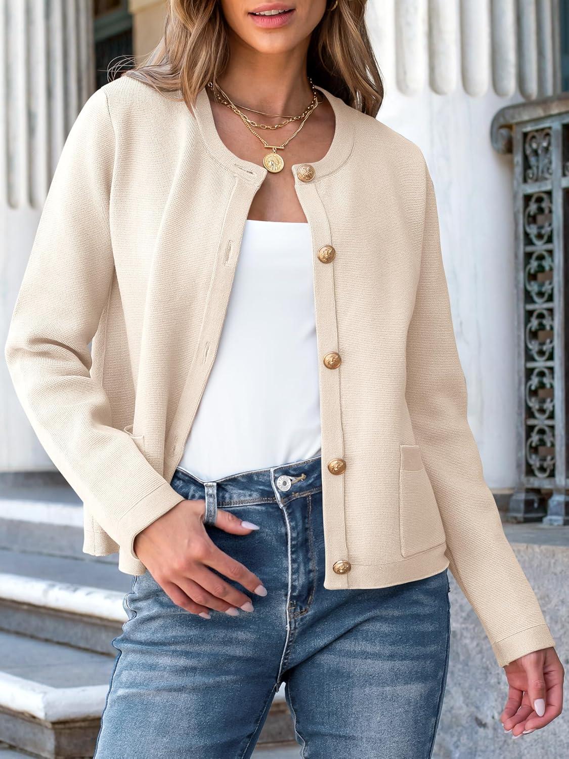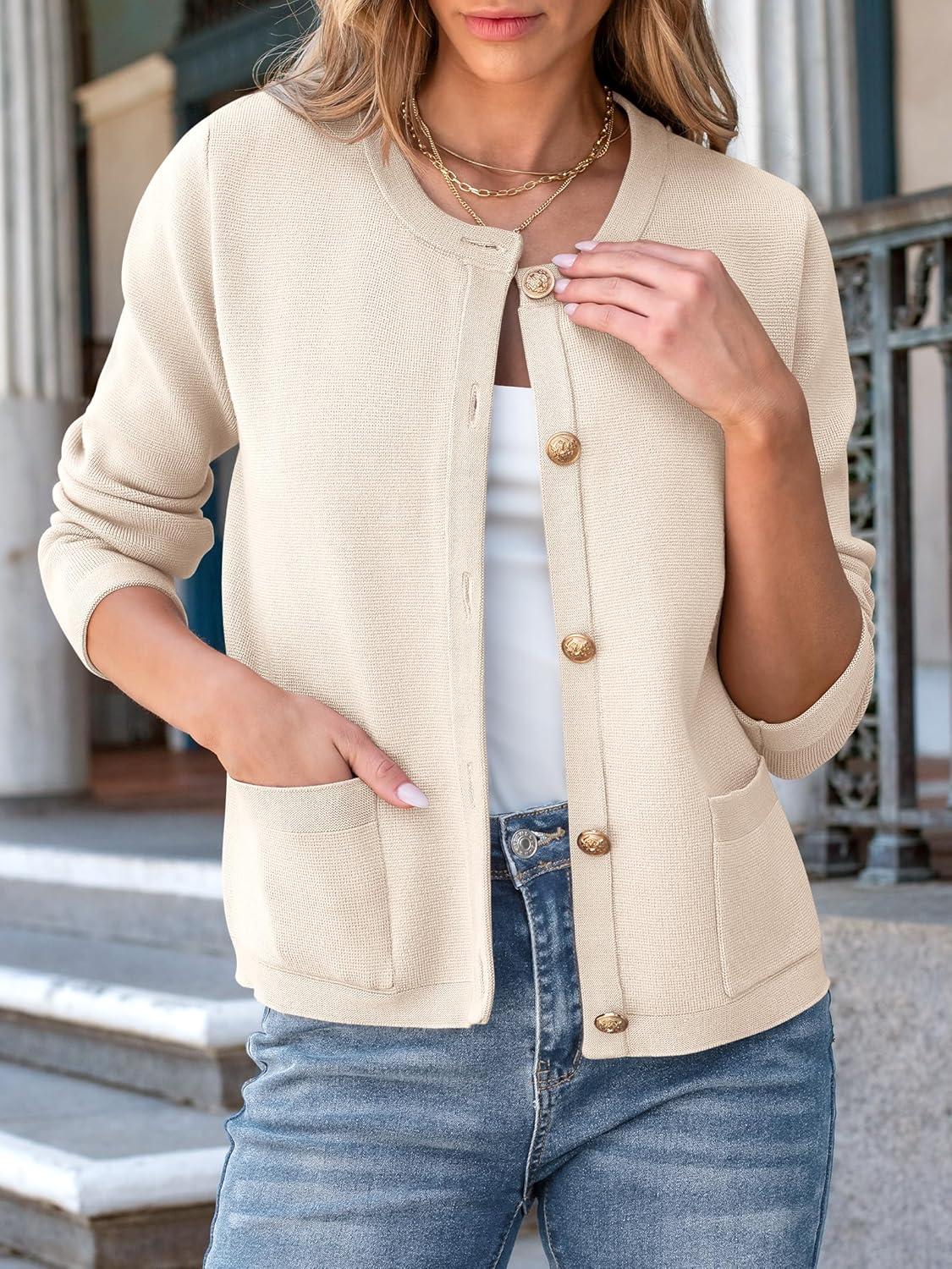 ANRABESS Women Striped Cardigan Sweaters Button Down Cropped Knit Lady Jackets Coat 2025 Fall Outfits Trendy Clothes(Apricot)
