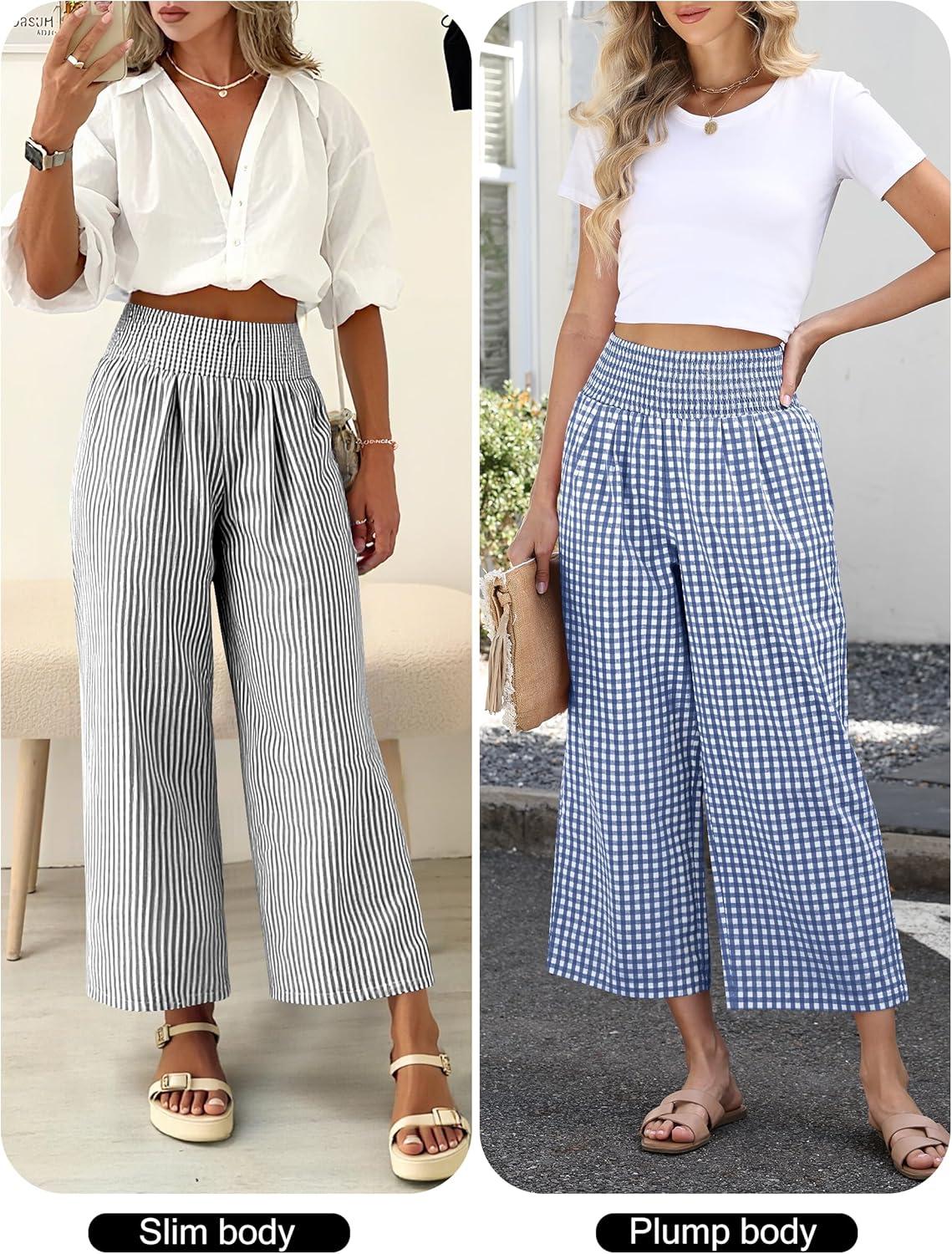 Be the first to review “ANRABESS Women Striped Gingham Wide Leg Palazzo Pants Casual Lounge Cropped PJ Bottoms Comfy Cute Plaid Pants with Pockets(Blue White Plaid)”