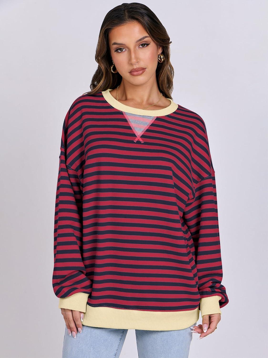 ANRABESS Women Striped Sweatshirts Oversized Crewneck Long Sleeve Shirts Y2K Pullover Top 2025 Fall Outfits Fashion Clothes(Red Blue)
