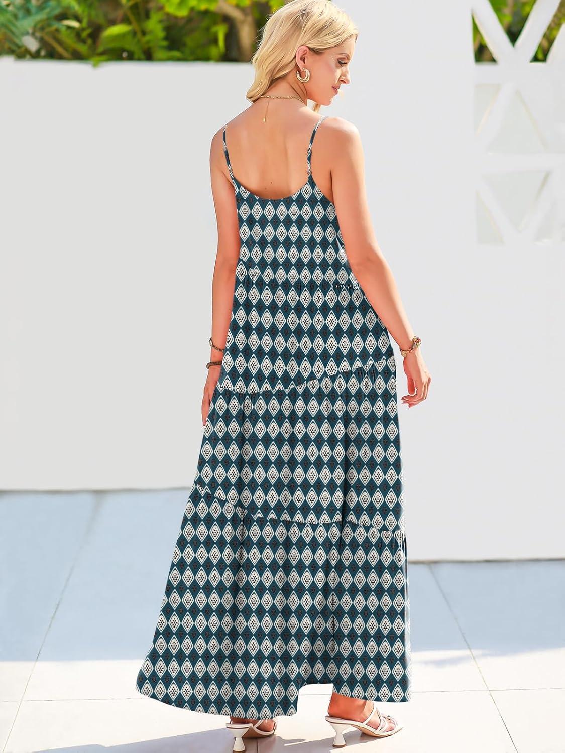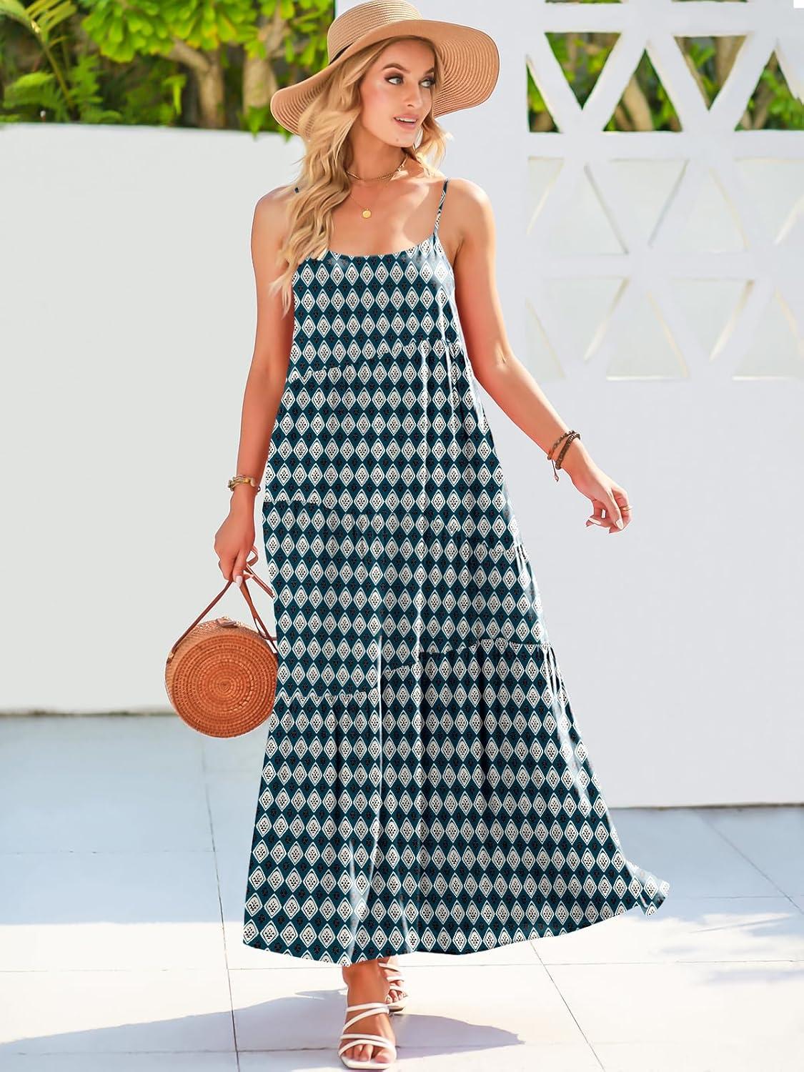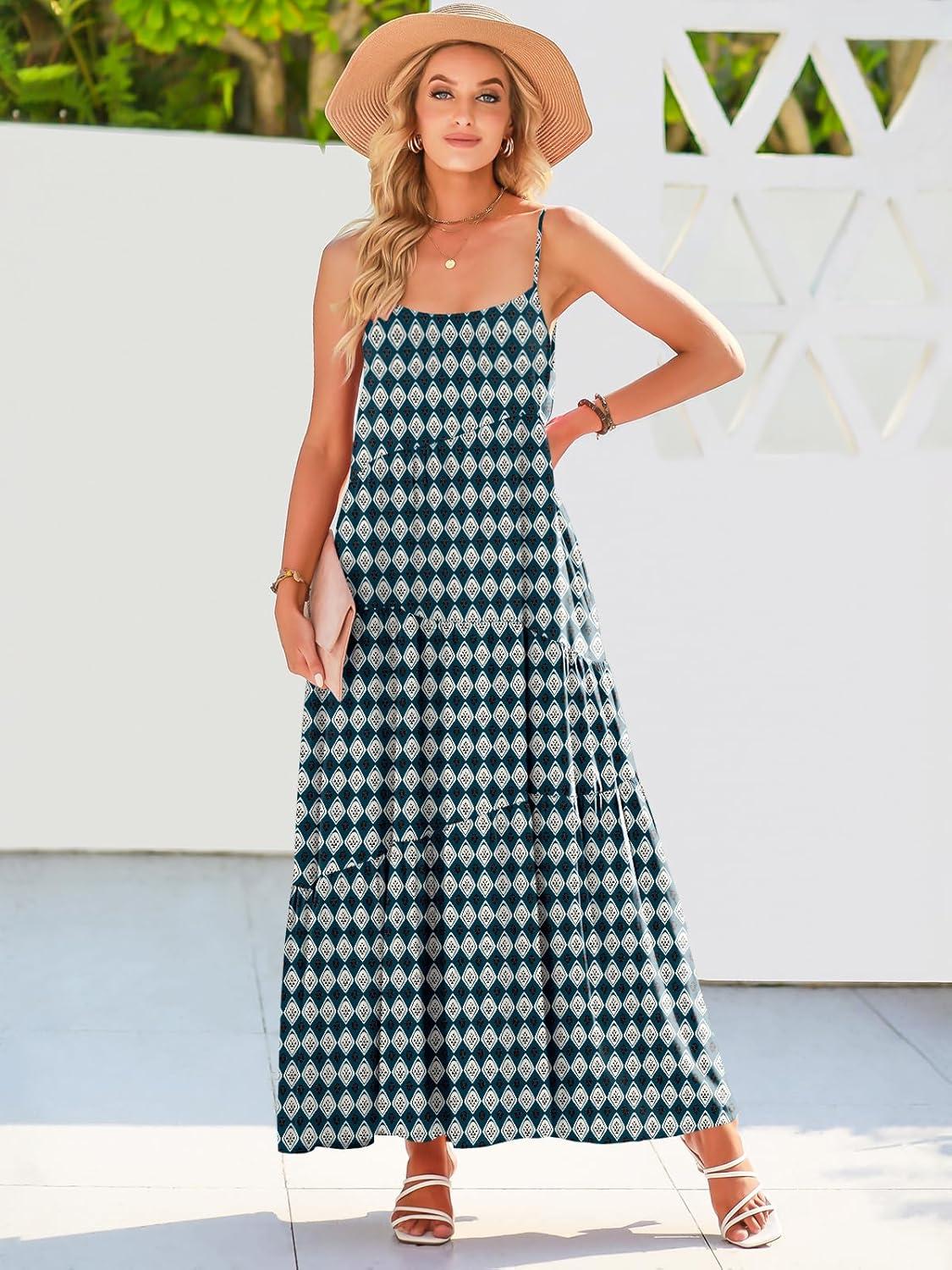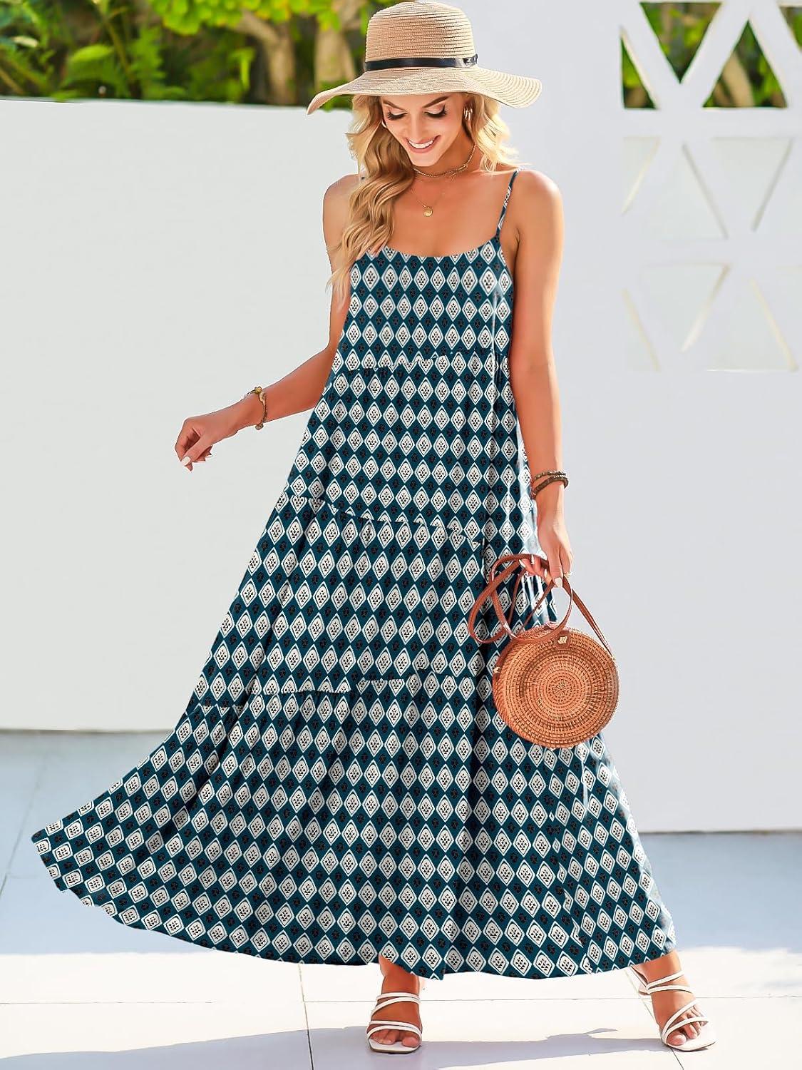 ANRABESS Women Summer Casual Loose Sleeveless Sundress Spaghetti Strap Flowy Boho Linen Beach Vacation Maxi Long Dress(Blue)