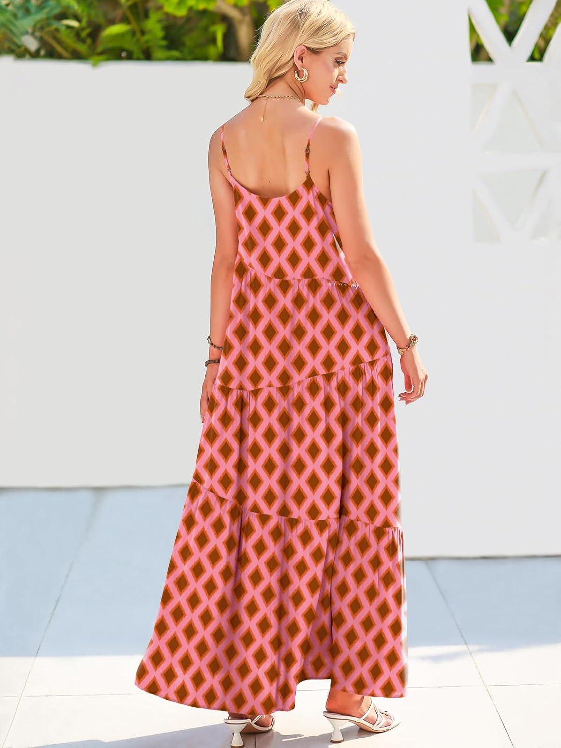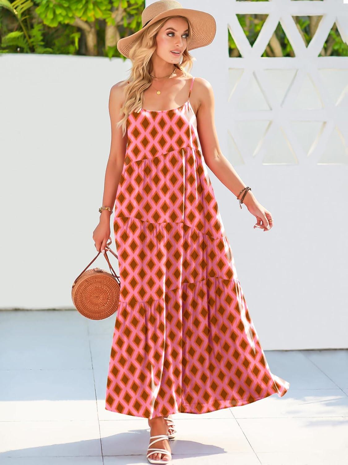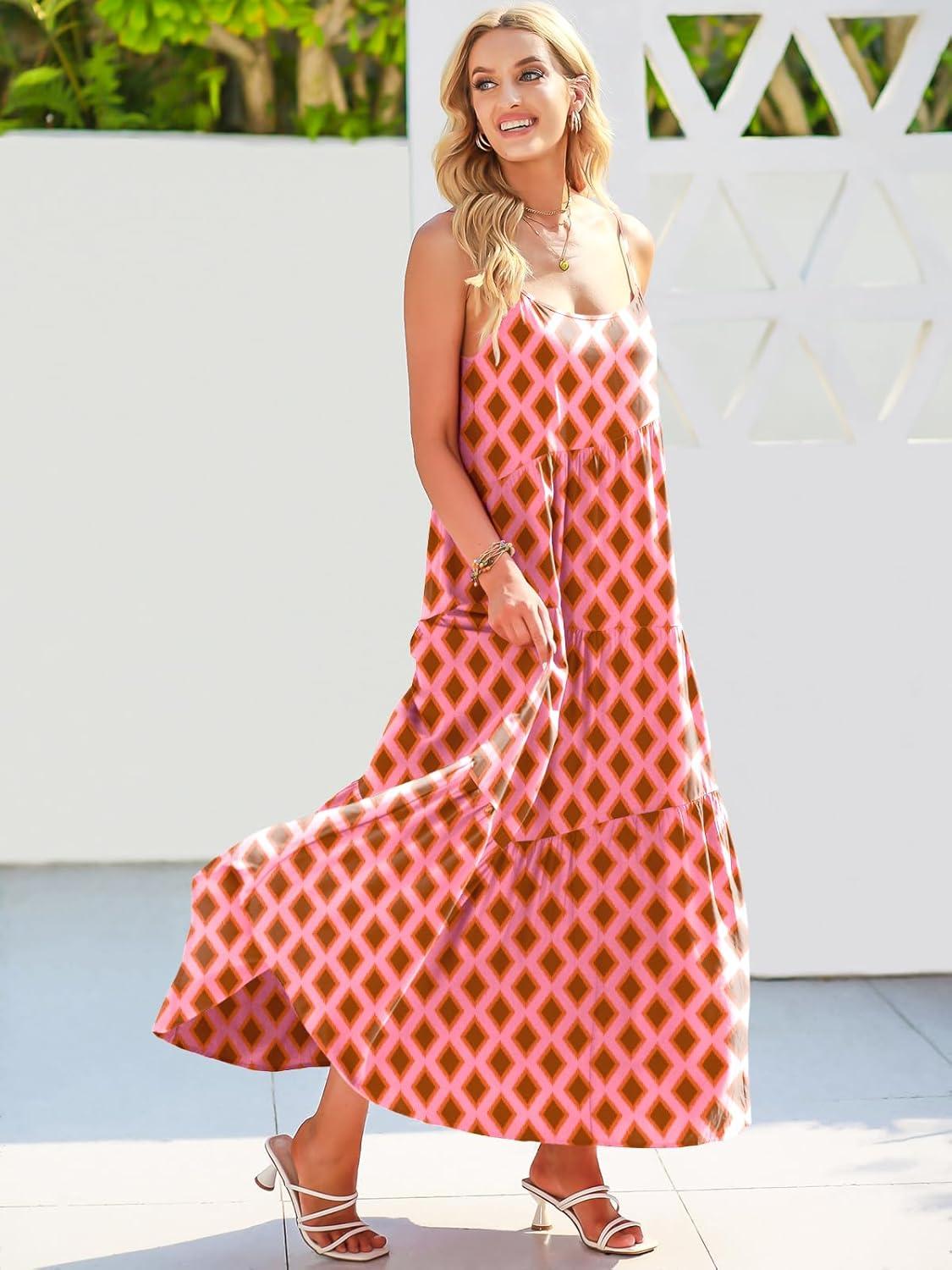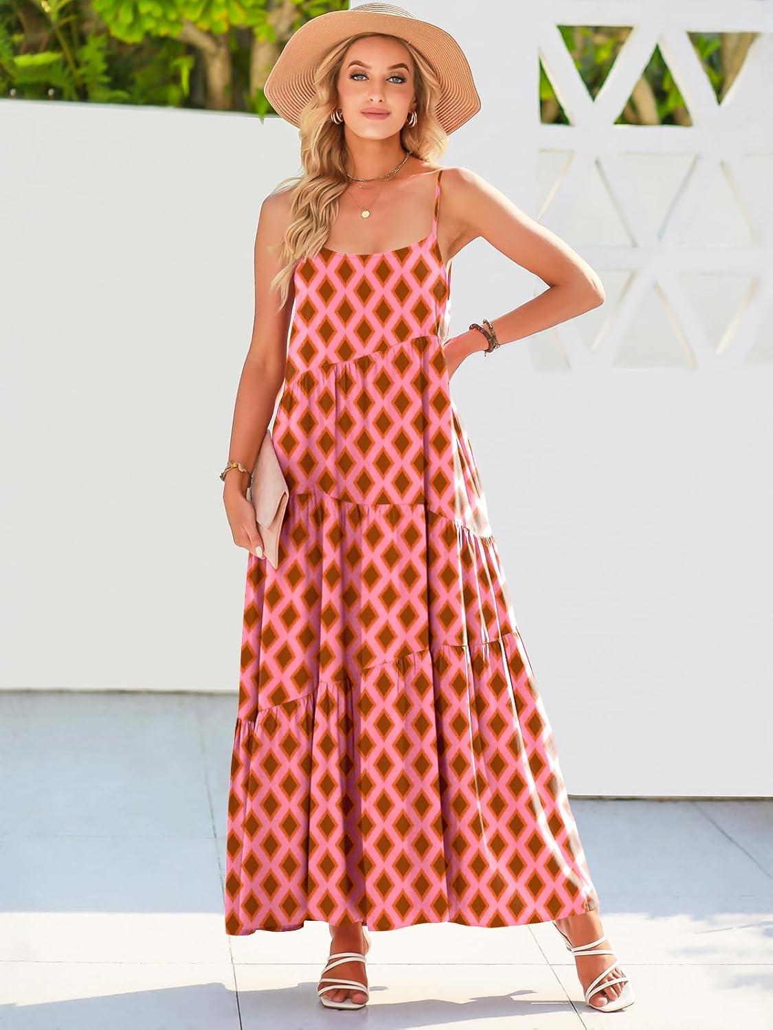 ANRABESS Women Summer Casual Loose Sleeveless Sundress Spaghetti Strap Flowy Boho Linen Beach Vacation Maxi Long Dress(Floral Orange)