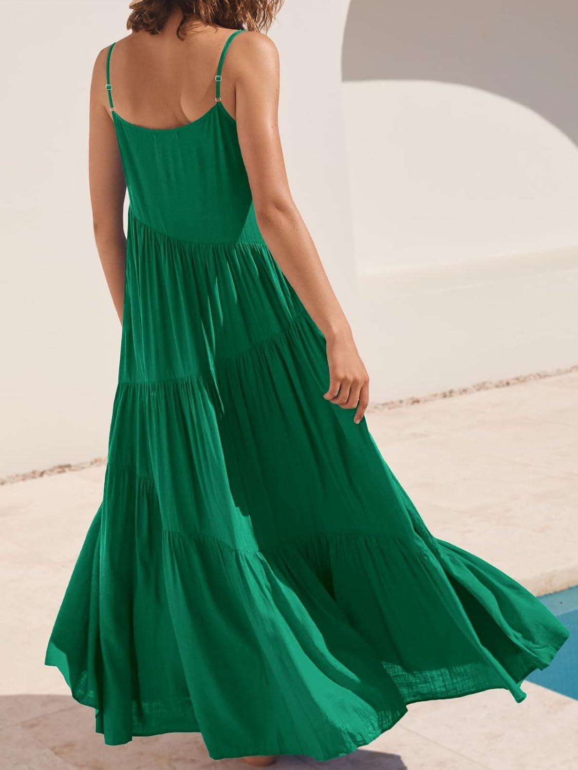 ANRABESS Women Summer Casual Loose Sleeveless Sundress Spaghetti Strap Flowy Boho Linen Beach Vacation Maxi Long Dress(Green)