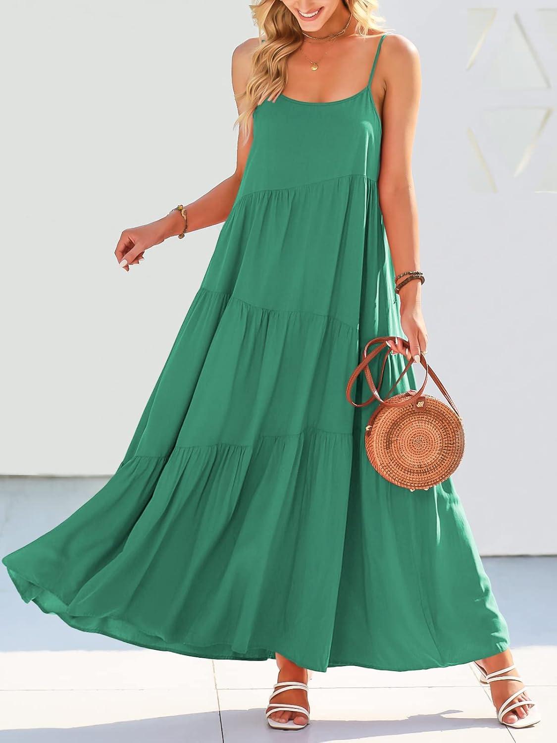 ANRABESS Women Summer Casual Loose Sleeveless Sundress Spaghetti Strap Flowy Boho Linen Beach Vacation Maxi Long Dress(Light Green)