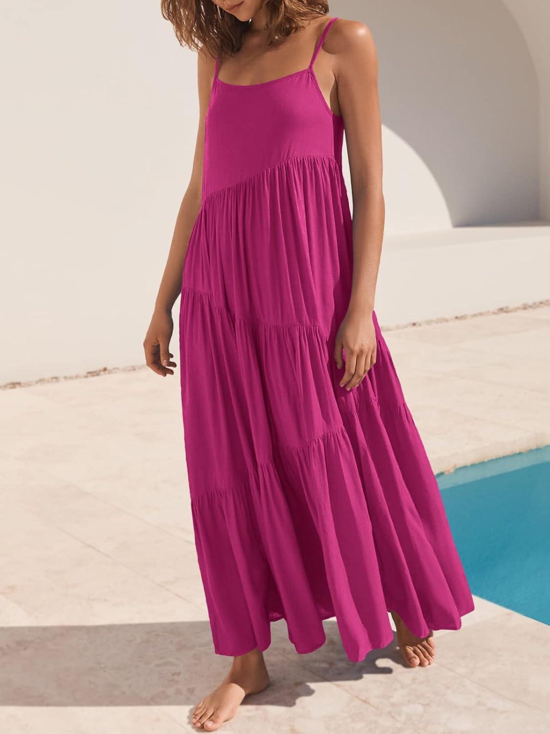 ANRABESS Women Summer Casual Loose Sleeveless Sundress Spaghetti Strap Flowy Boho Linen Beach Vacation Maxi Long Dress(Rose)