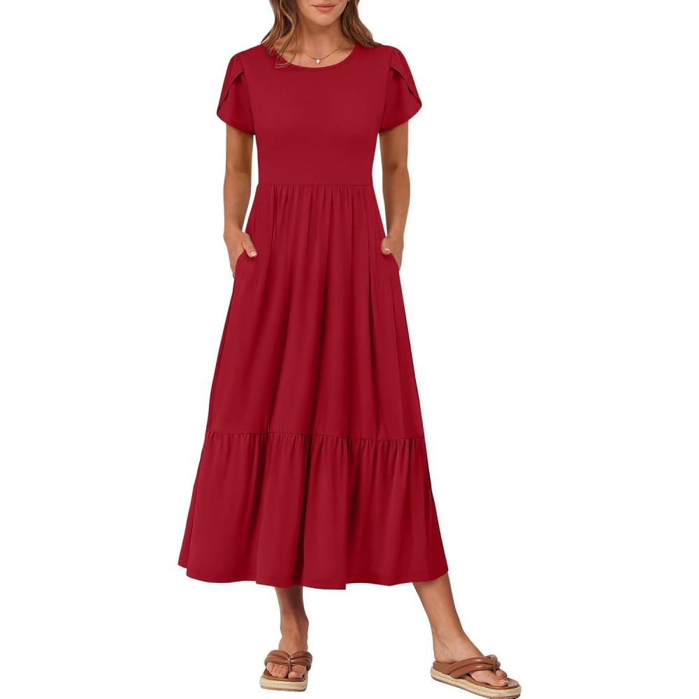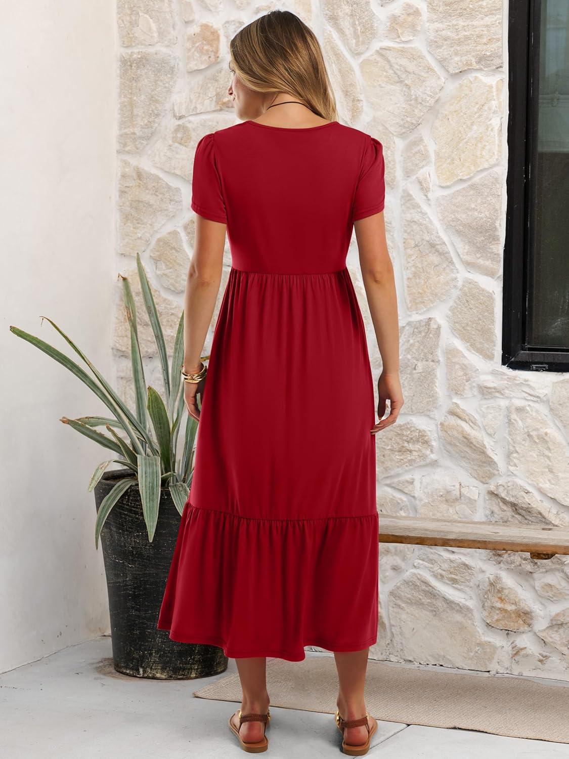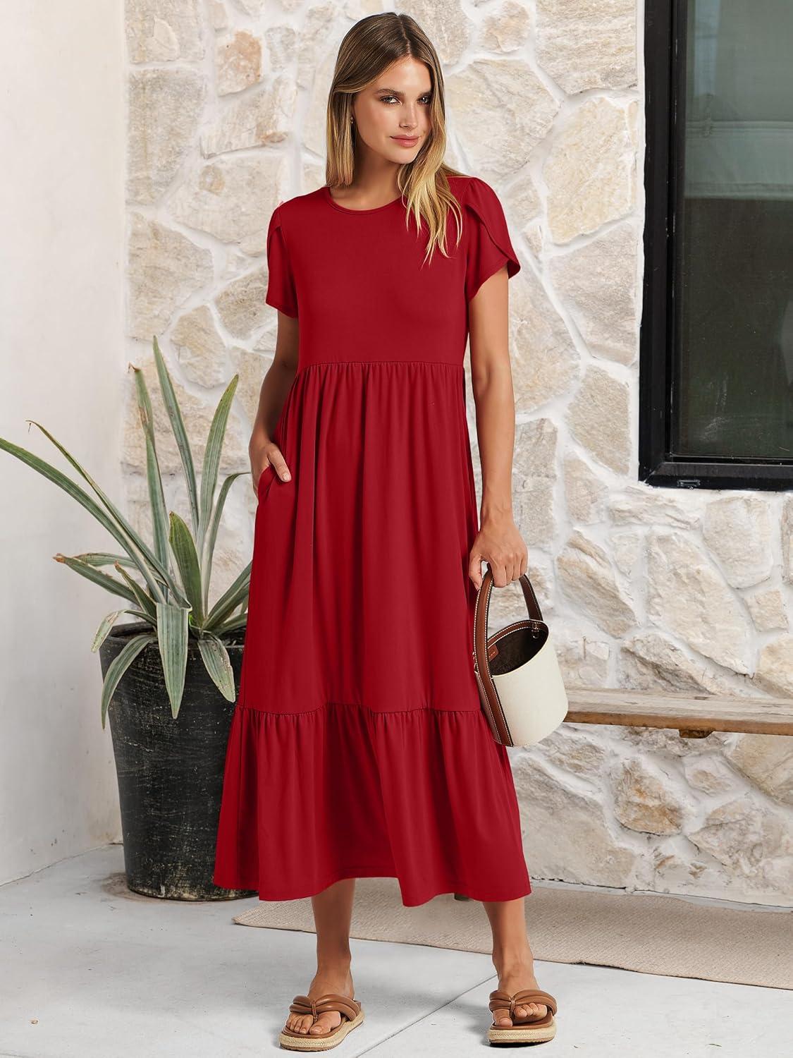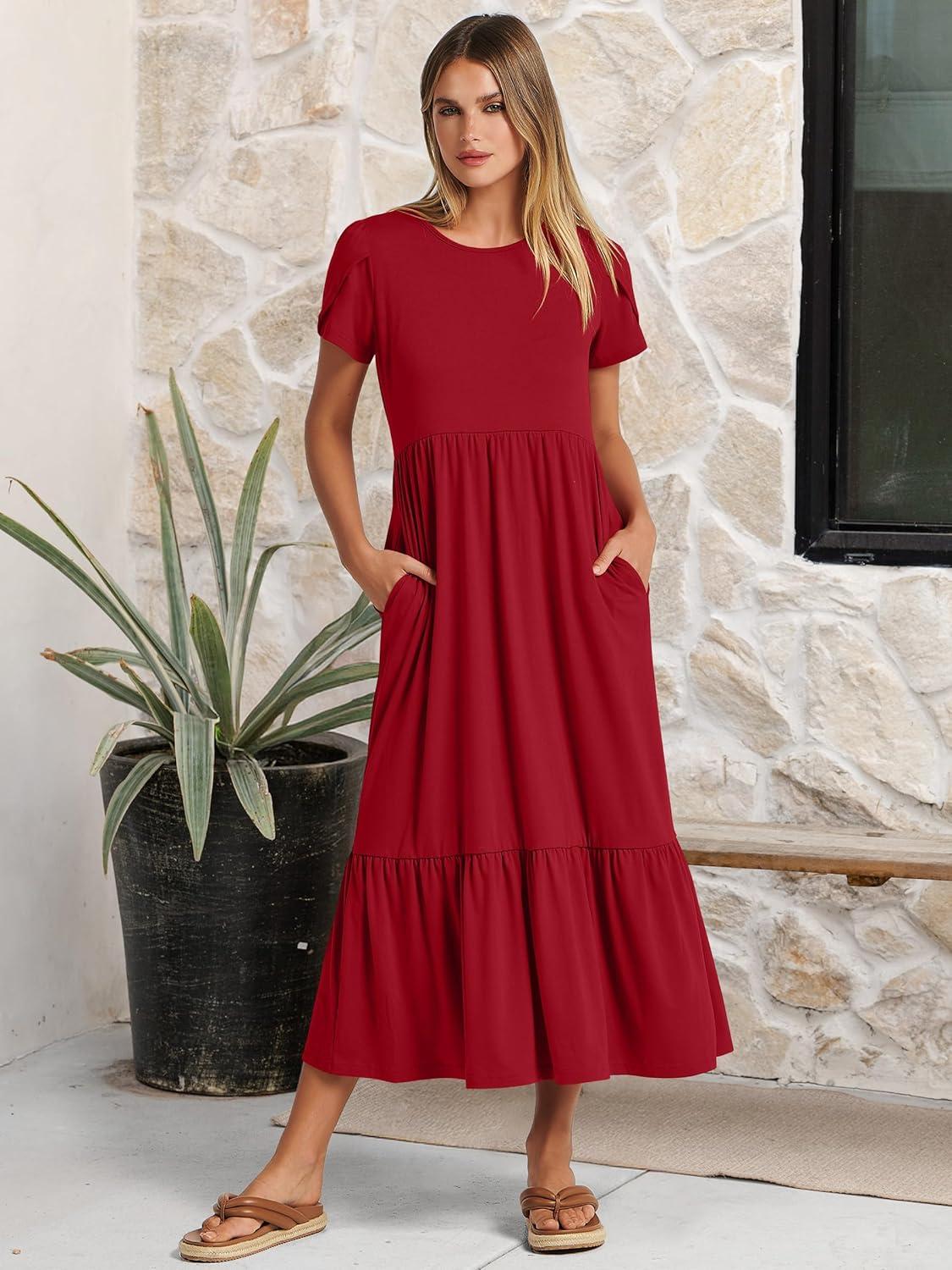 ANRABESS Women Summer Casual Short Sleeve Maxi Dresses A Line Flowy T Shirt Dress 2026 Beach Vacation Sundress with Pockets(Red)
