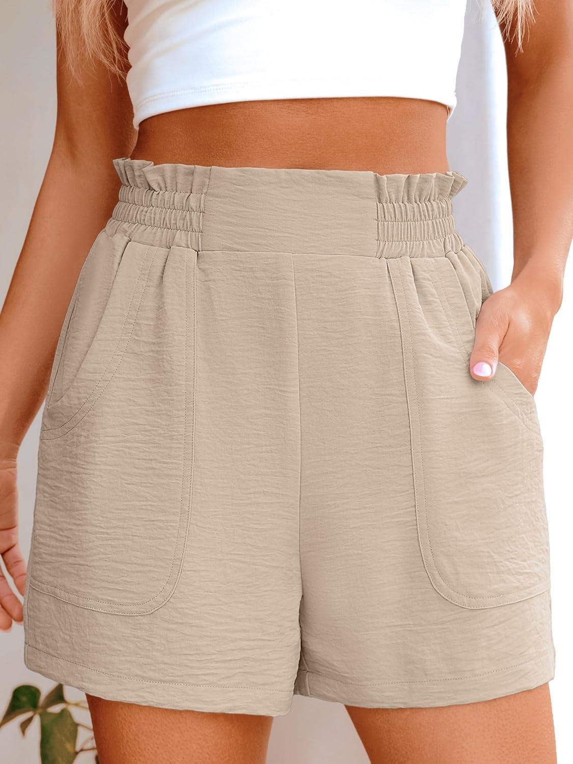imageANRABESS Women Summer Casual Shorts Elastic High Waisted Wide Leg Cute Dressy Beach Shorts 2025 Fashion Vacation OutfitsKhaki