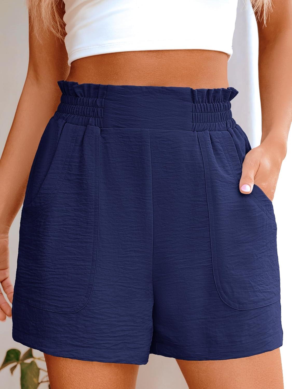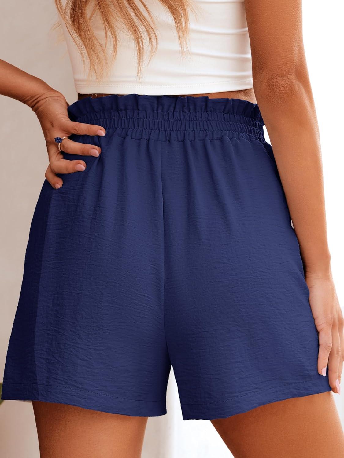 ANRABESS Women Summer Casual Shorts Elastic High Waisted Wide Leg Cute Dressy Beach Shorts 2025 Fashion Vacation Outfits(Navy Blue)