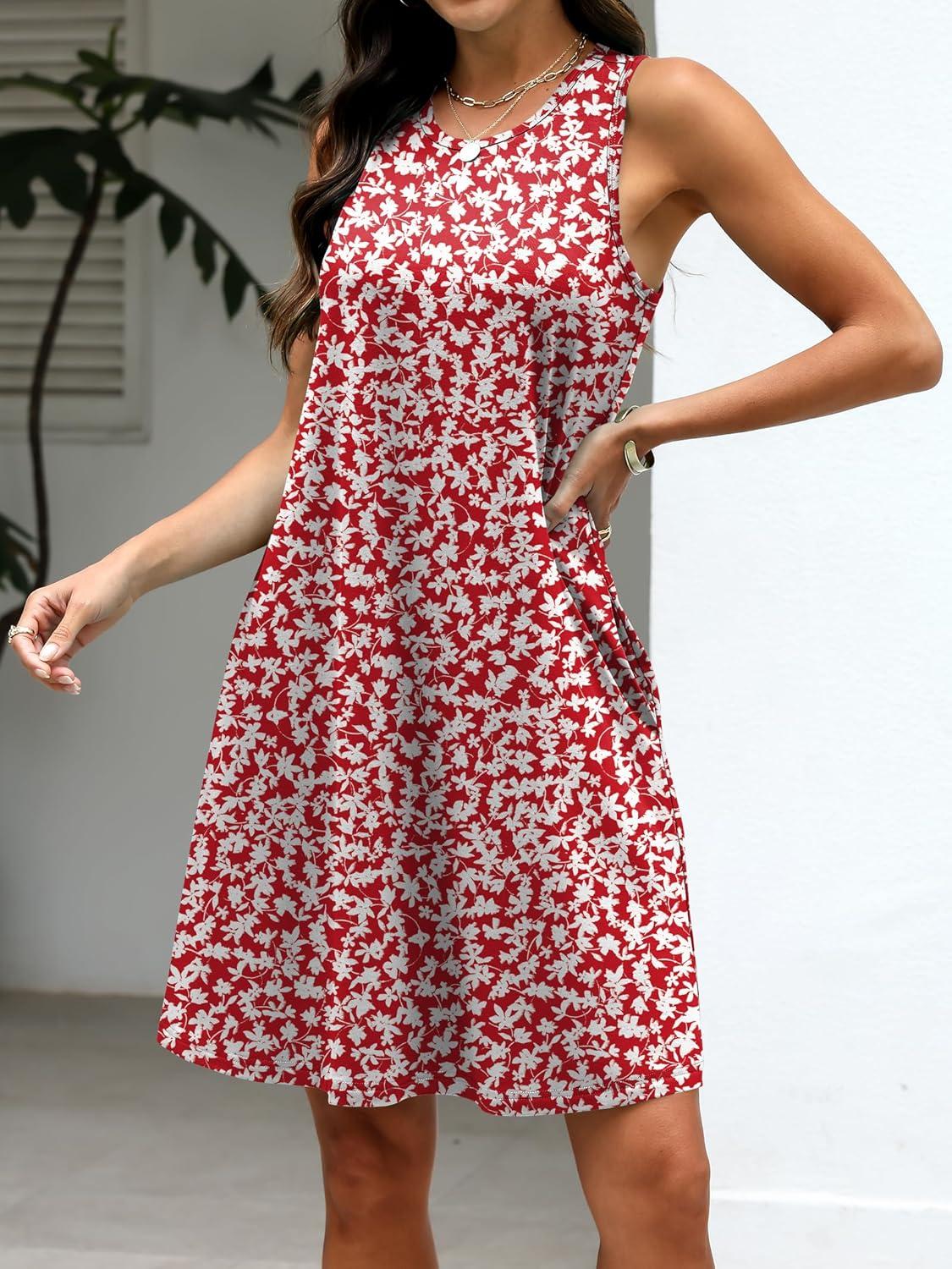 ANRABESS Women Summer Dress Built in Bra 2026 Casual Sleeveless Beach Sundress Flowy Tank Mini Short Dresses with Pockets(Red White Floral)