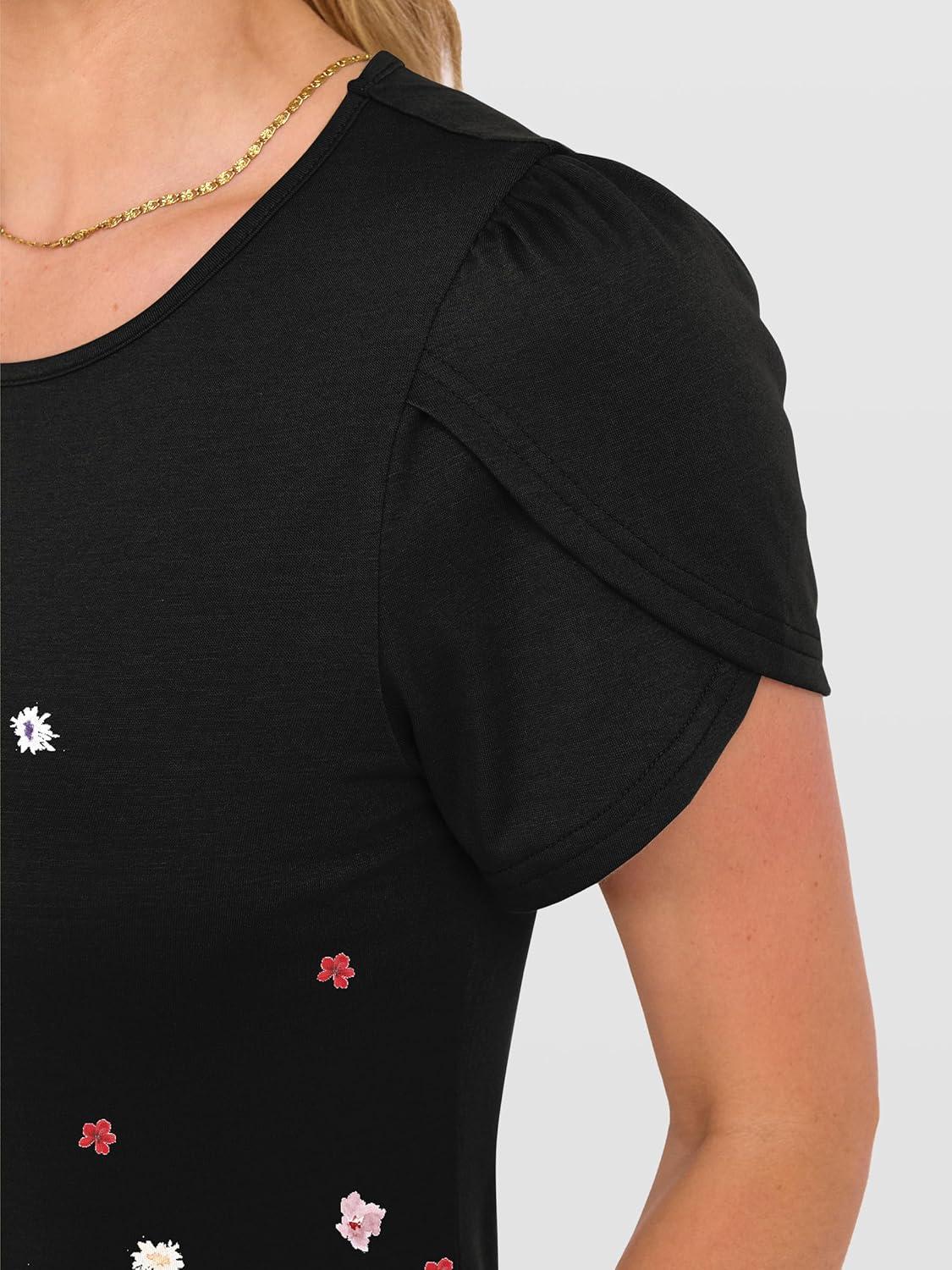ANRABESS Women Summer Dress Short Sleeve Crew Neck Boho Floral T-Shirt Sundress Beach Vacation Swimsuit Coverup with Pockets(Black)