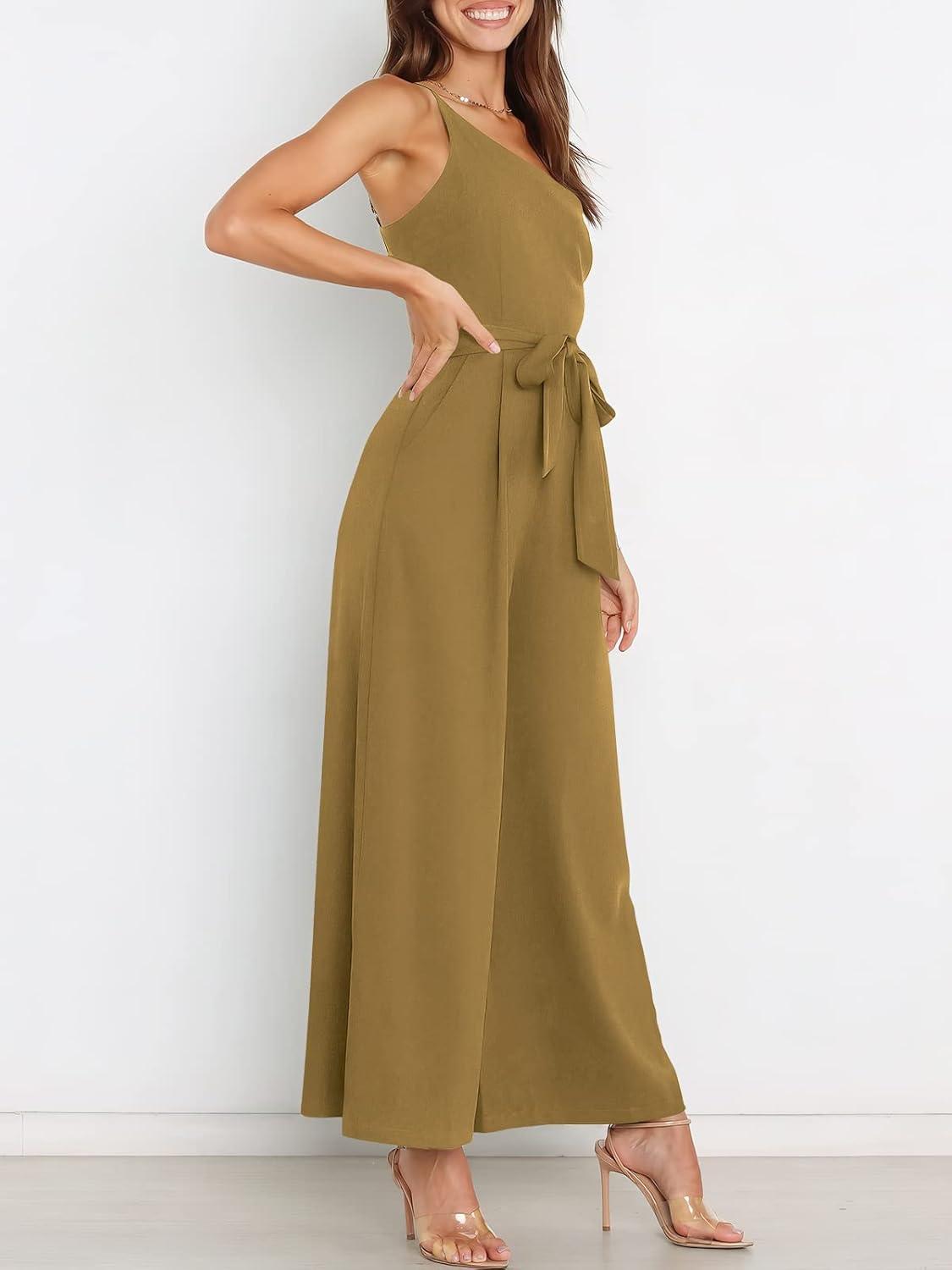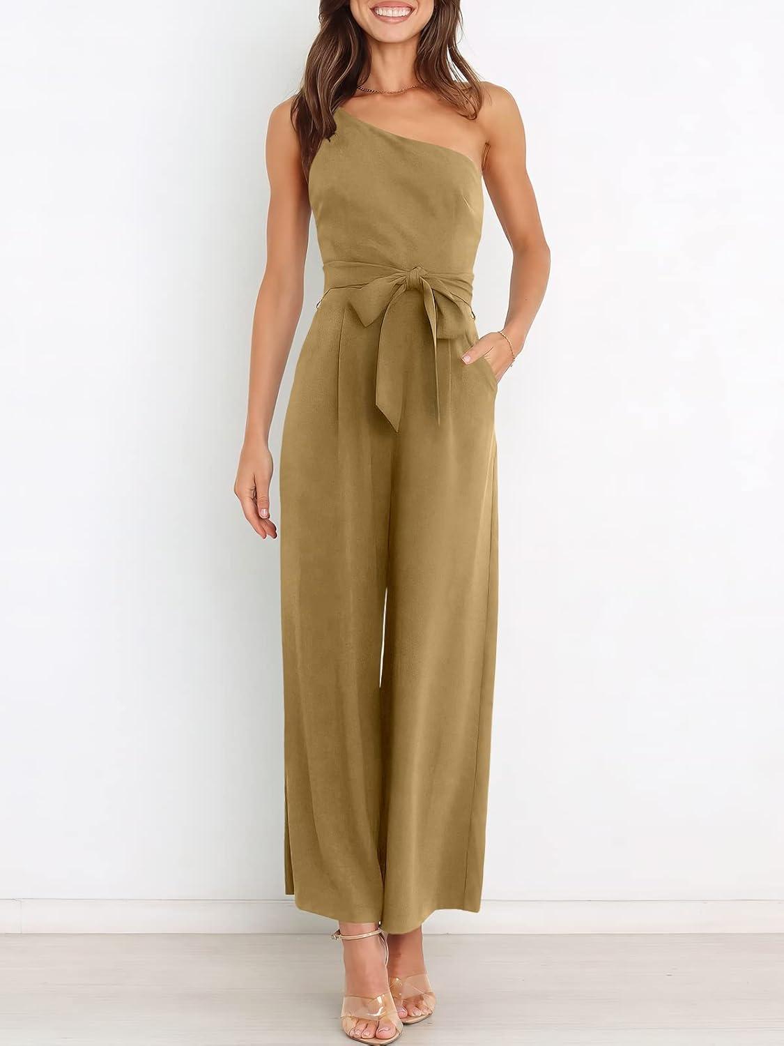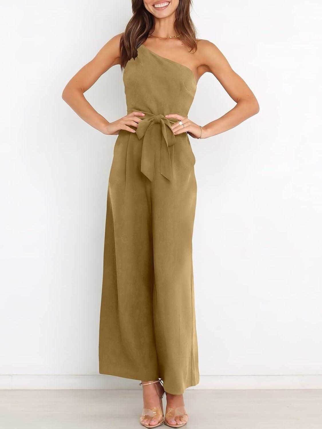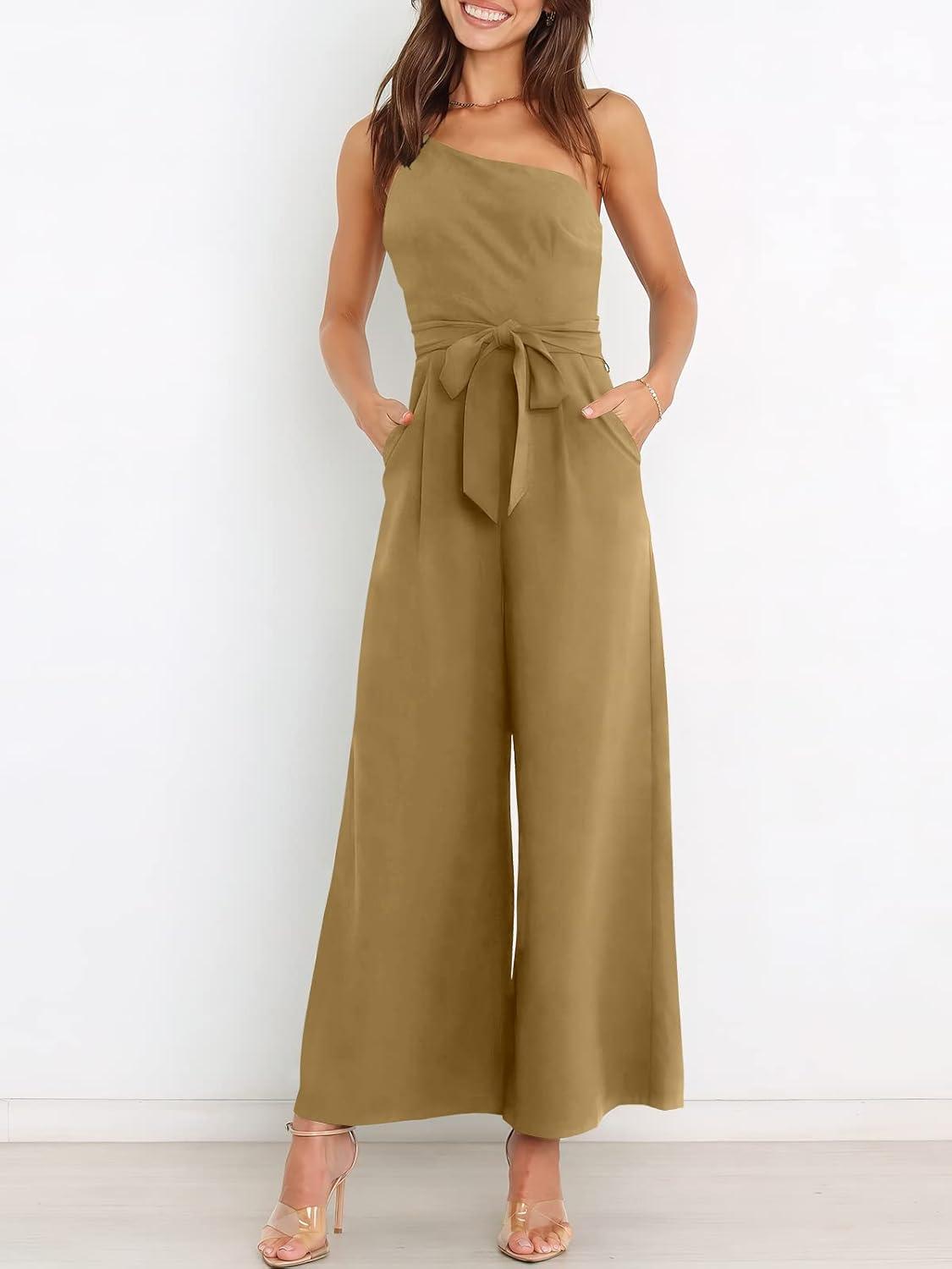ANRABESS Women Summer Dressy Jumpsuits One Shoulder Sleeveless Casual Wide Leg Pants Romper Jumper 2025 Trendy Fall Outfits(Khaki)
