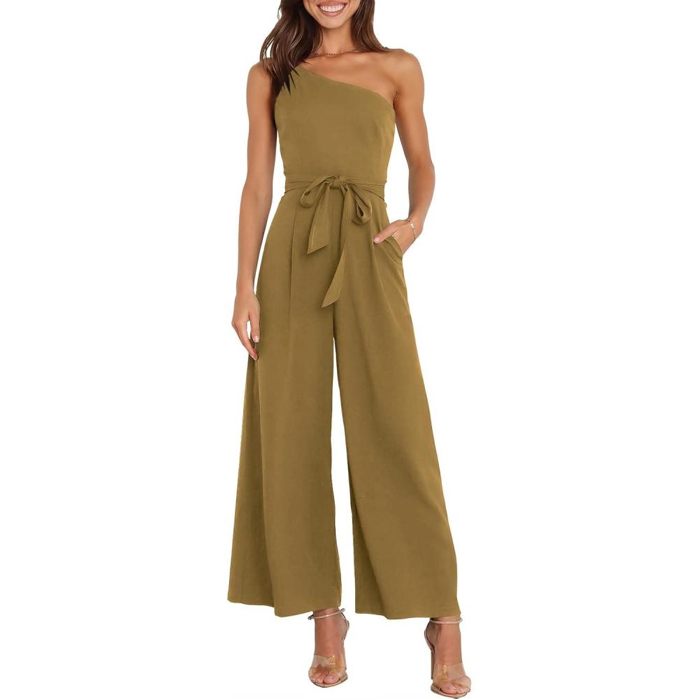 imageANRABESS Women Summer Dressy Jumpsuits One Shoulder Sleeveless Casual Wide Leg Pants Romper Jumper 2025 Trendy Fall OutfitsKhaki