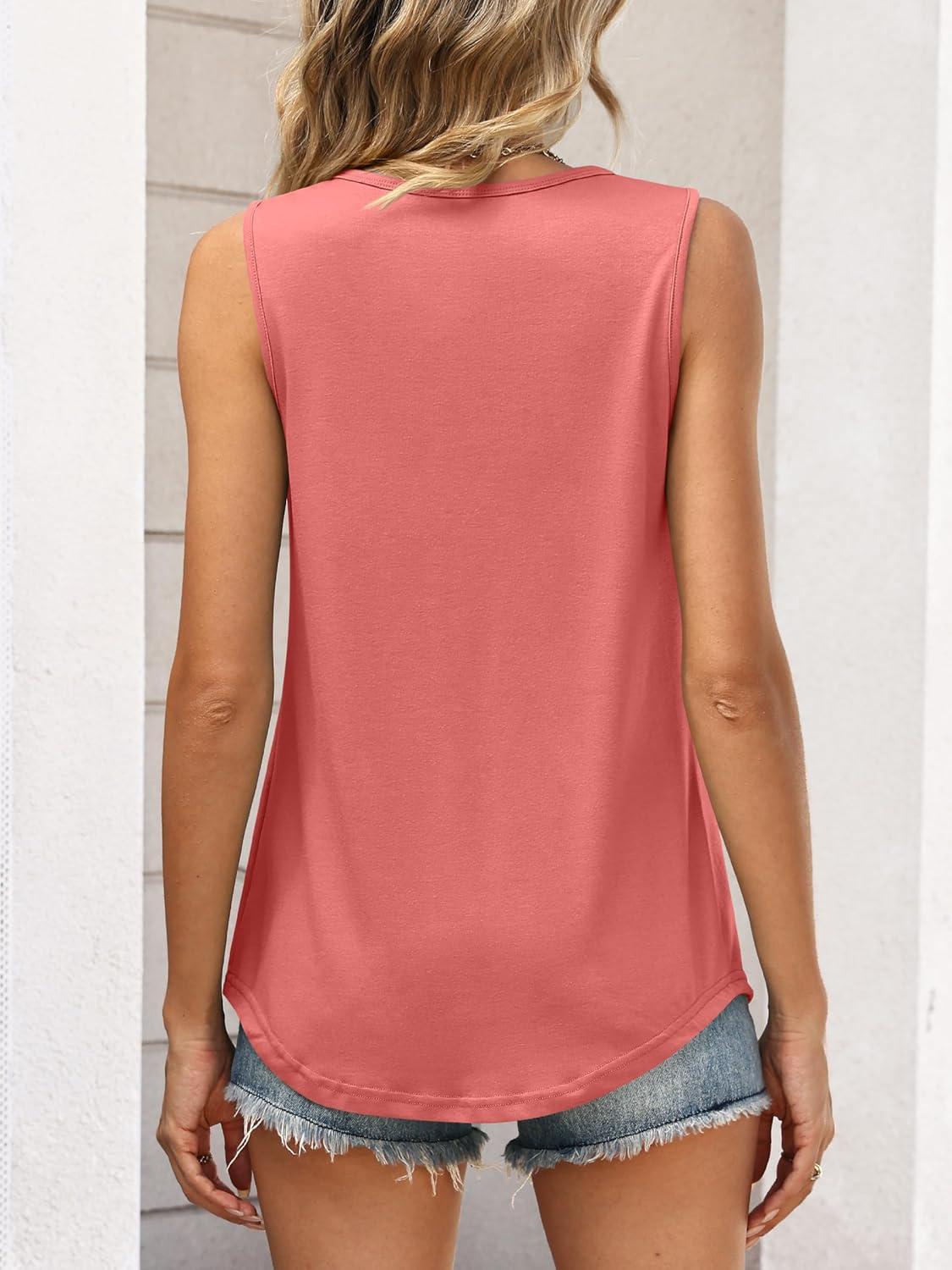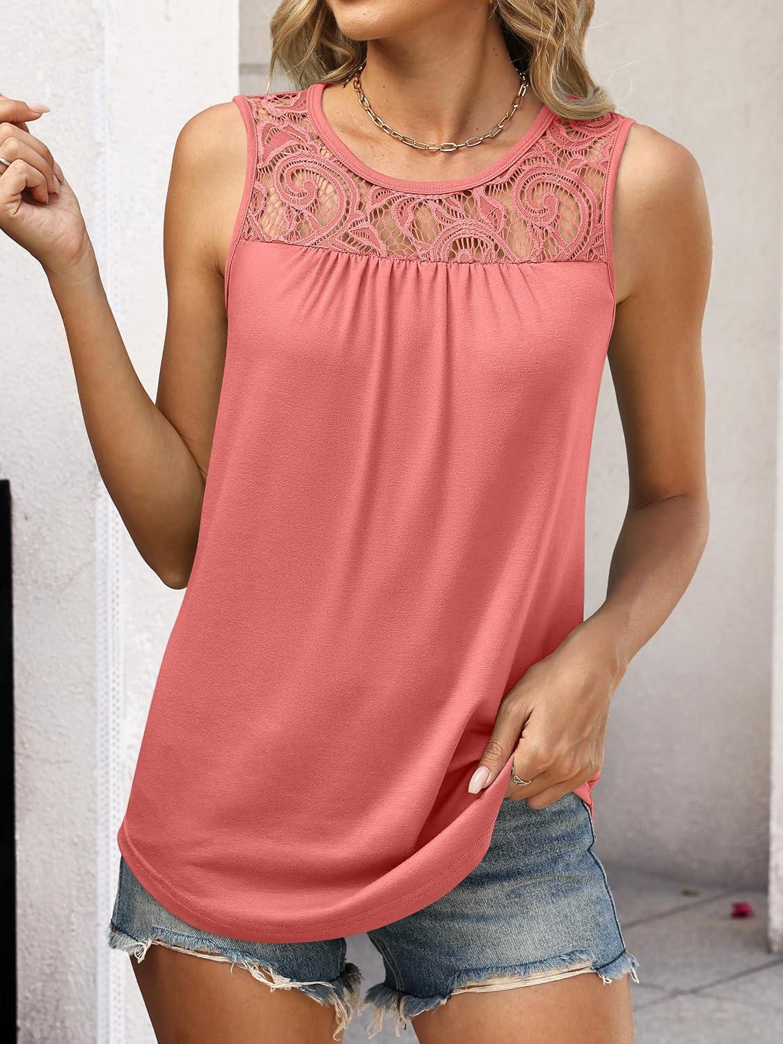 ANRABESS Women Summer Lace Tank Tops 2026 Summer Sleeveless Loose Fit Curved Hem Flowy Shirts Dressy Casual Tunic Blouse(Coral)