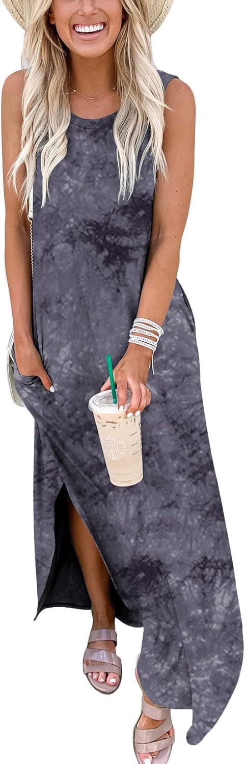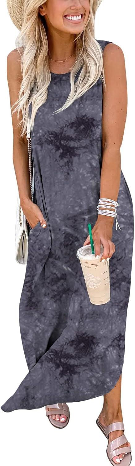 ANRABESS Women Summer Maxi Dress Beach Vacation Sundress Sleeveless Casual Loose Shirt Dresses 2025 Travel Outfits(Print Dark)