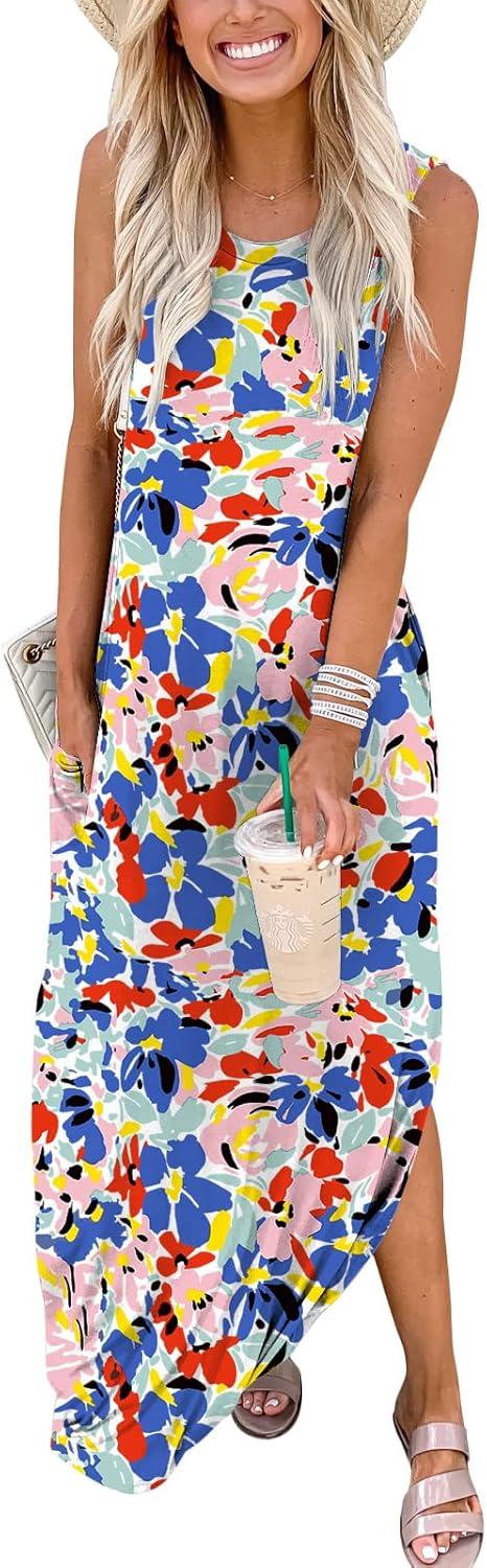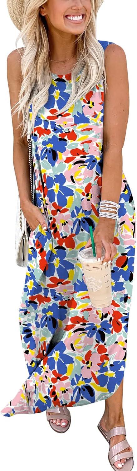 ANRABESS Women Summer Maxi Dress Beach Vacation Sundress Sleeveless Casual Loose Shirt Dresses 2025 Travel Outfits(Tie Dy Rainbow)