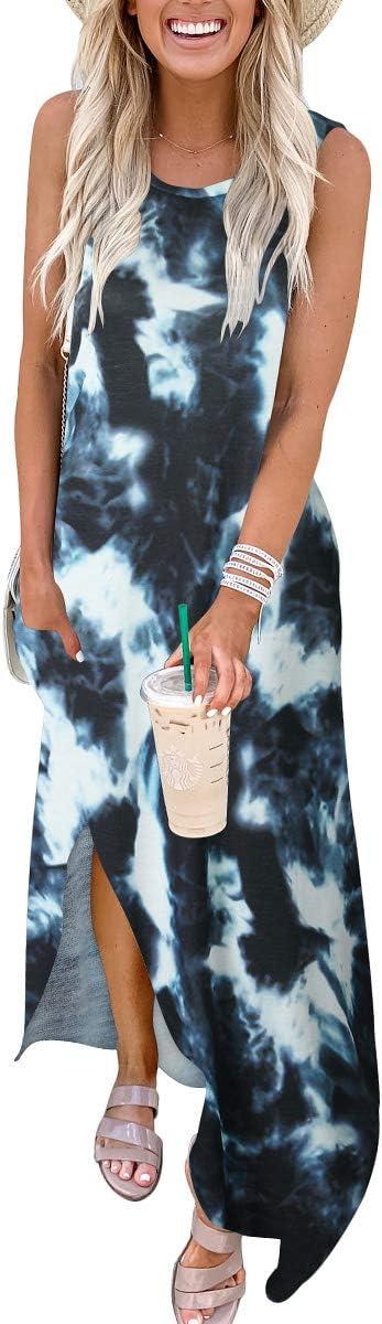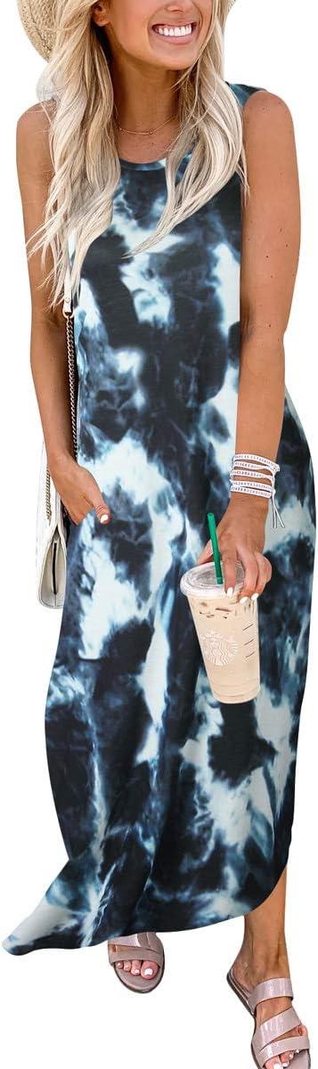 ANRABESS Women Summer Maxi Dress Beach Vacation Sundress Sleeveless Casual Loose Shirt Dresses 2025 Travel Outfits(Tie Dye Blue/White)