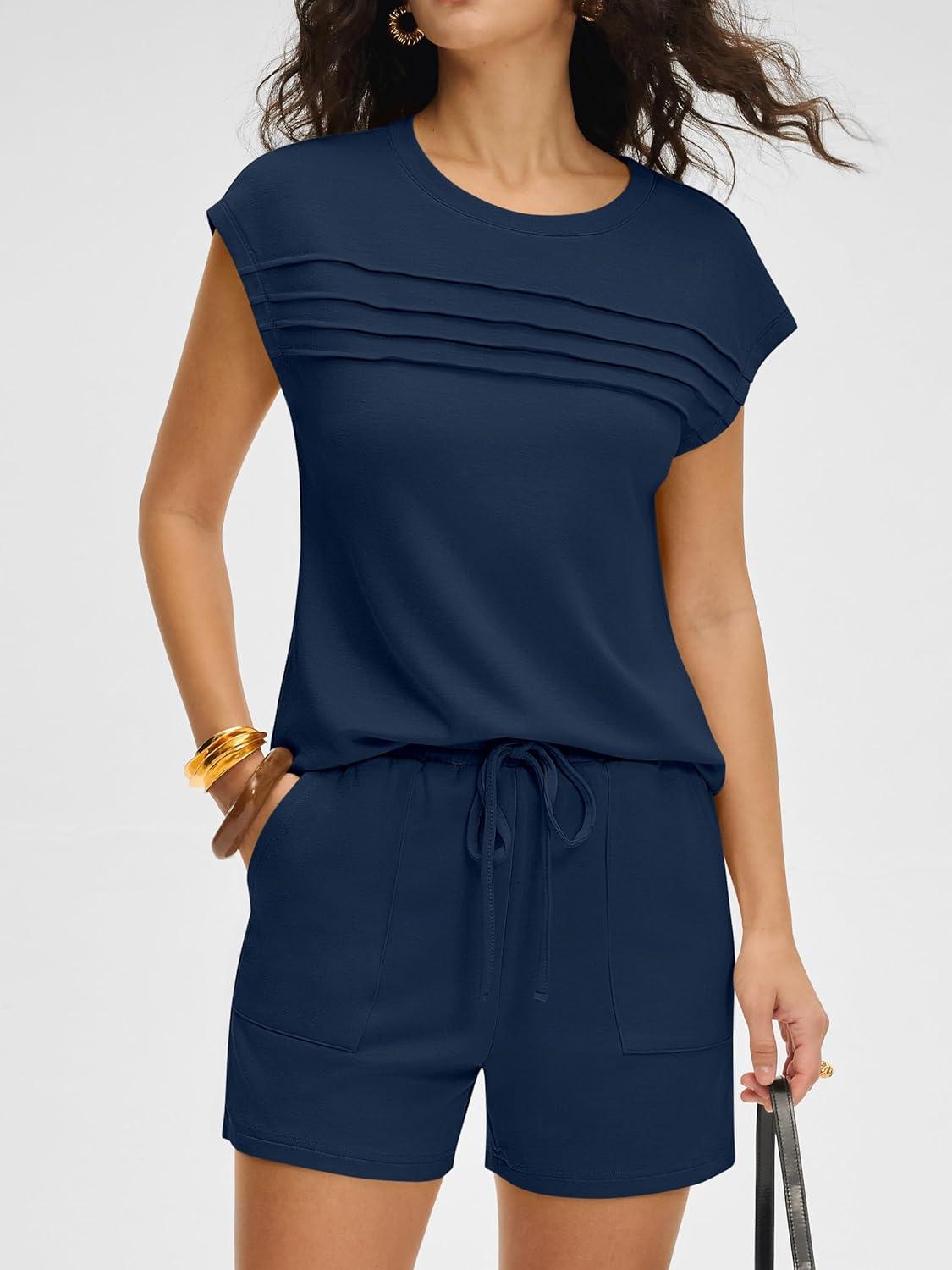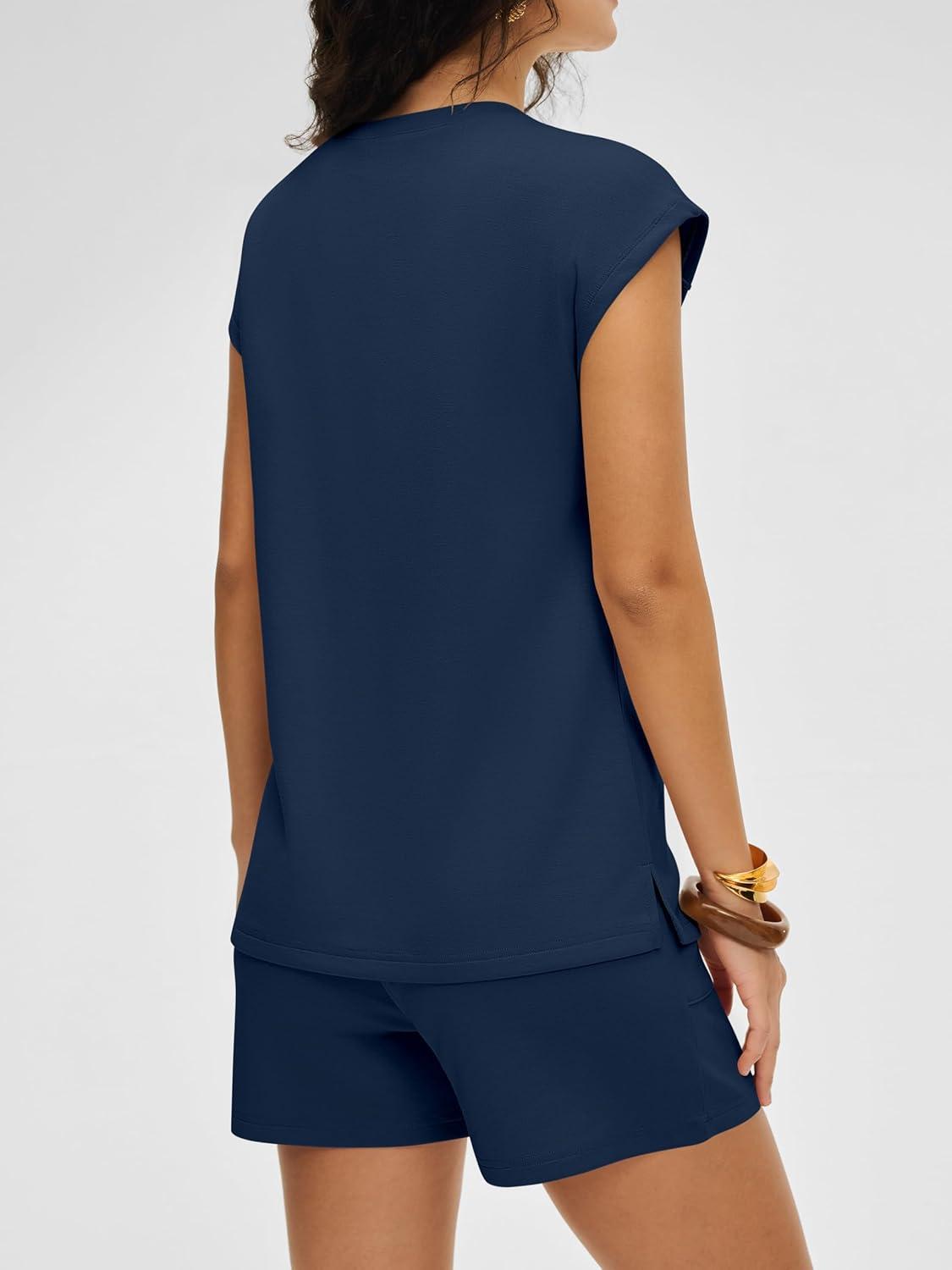 ANRABESS Women Summer Two Piece Lounge Short Sets 2026 Beach Vacation Travel Airport Outfits Comfy Fashion Sweatsuits(Navy Blue)