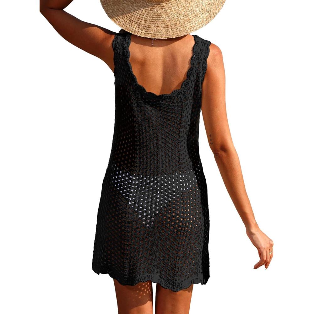 ANRABESS Women Swimsuit Cover Ups Summer Sleeveless Beach Crochet Swimwear Bathing Suit Knit Swim Dress 2025 Vacation Outfits(Black)