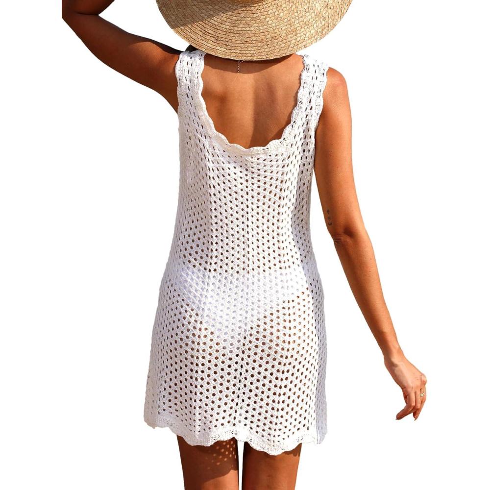 imageANRABESS Women Swimsuit Cover Ups Summer Sleeveless Beach Crochet Swimwear Bathing Suit Knit Swim Dress 2025 Vacation OutfitsCream White