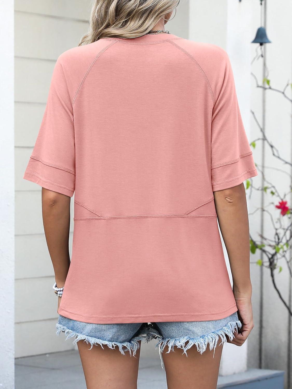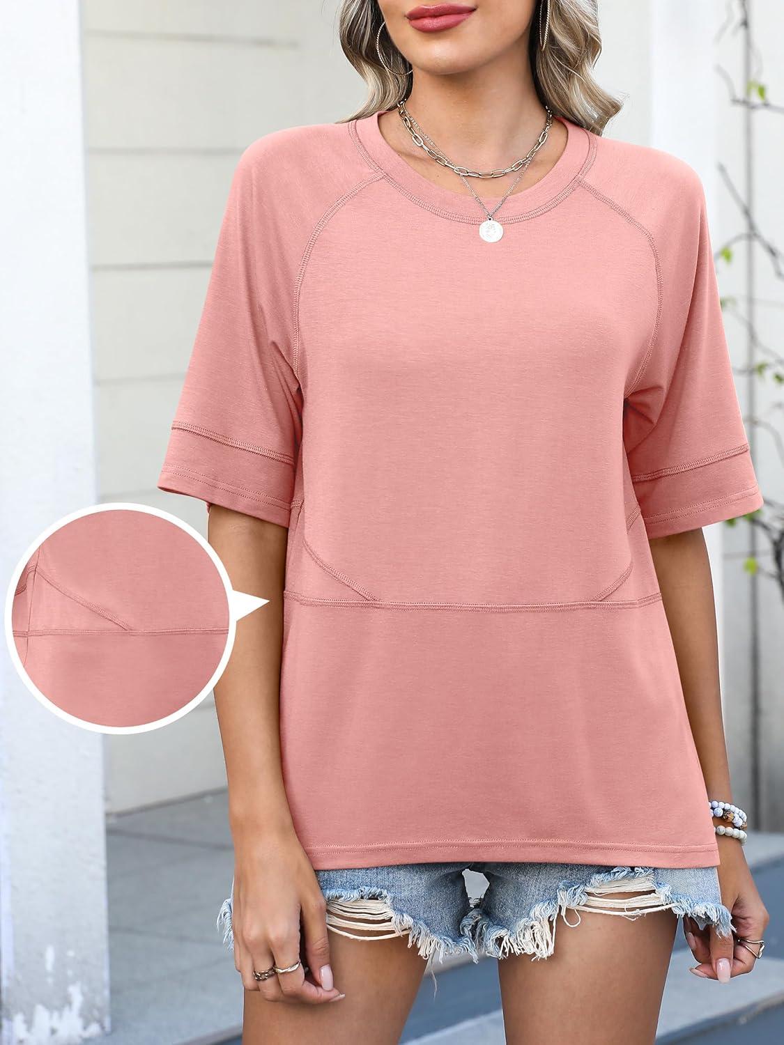 ANRABESS Women T-Shirts 2026 Fashion Half Sleeve Loose Fit Top Trendy Cute Flowy Tee Shirts Summer Casual Outfits(Coral Pink)