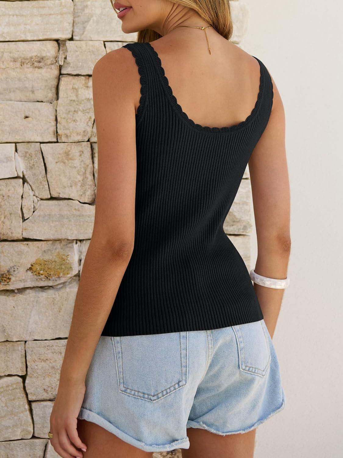 ANRABESS Women Tank Tops Scoop Neck Ribbed Knit Summer Sweater 2026 Sleeveless Casual Shirts Cute Beach Vacation Clothes(Black)