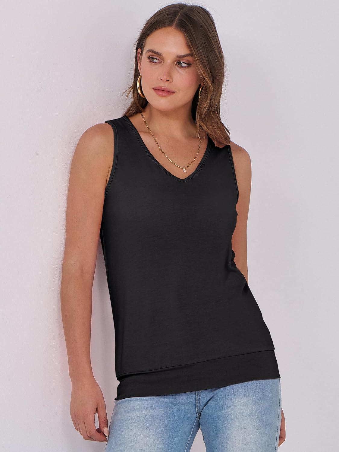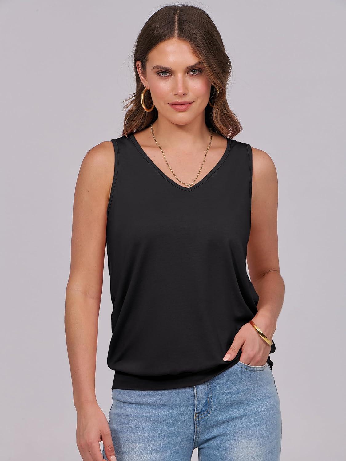 ANRABESS Women Tank Tops Summer V Neck Sleeveless Casual Loose Fit Cute Cami Basic T Shirts Solid Tees 2025 Trendy Outfits(Black)
