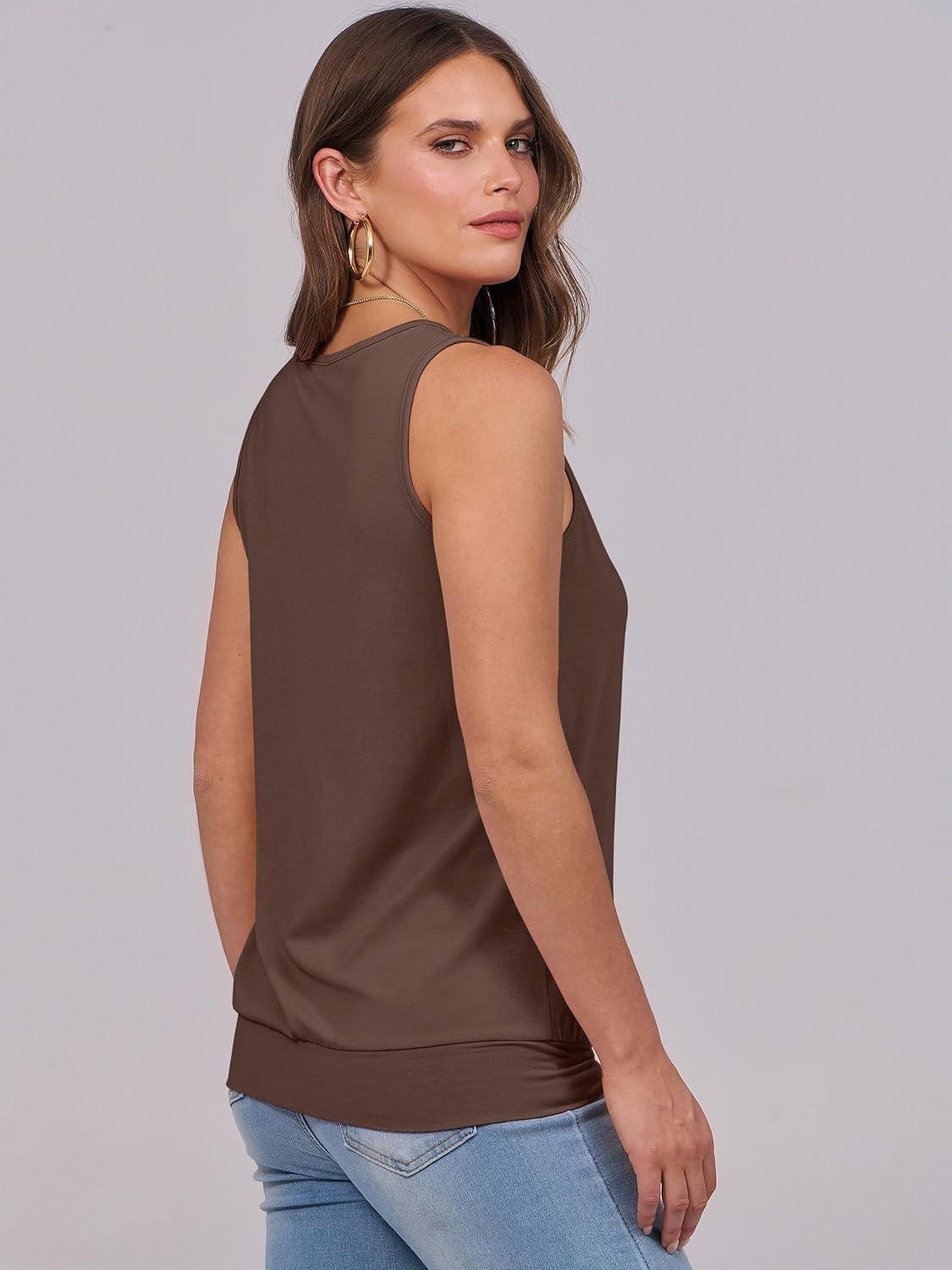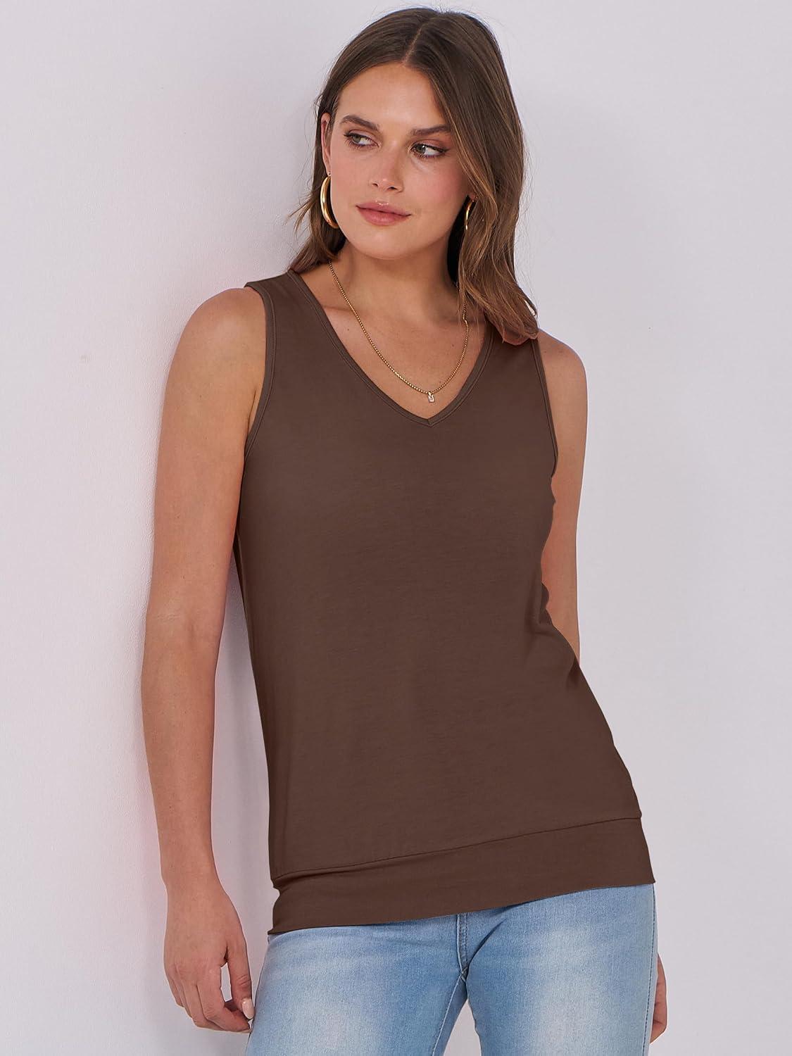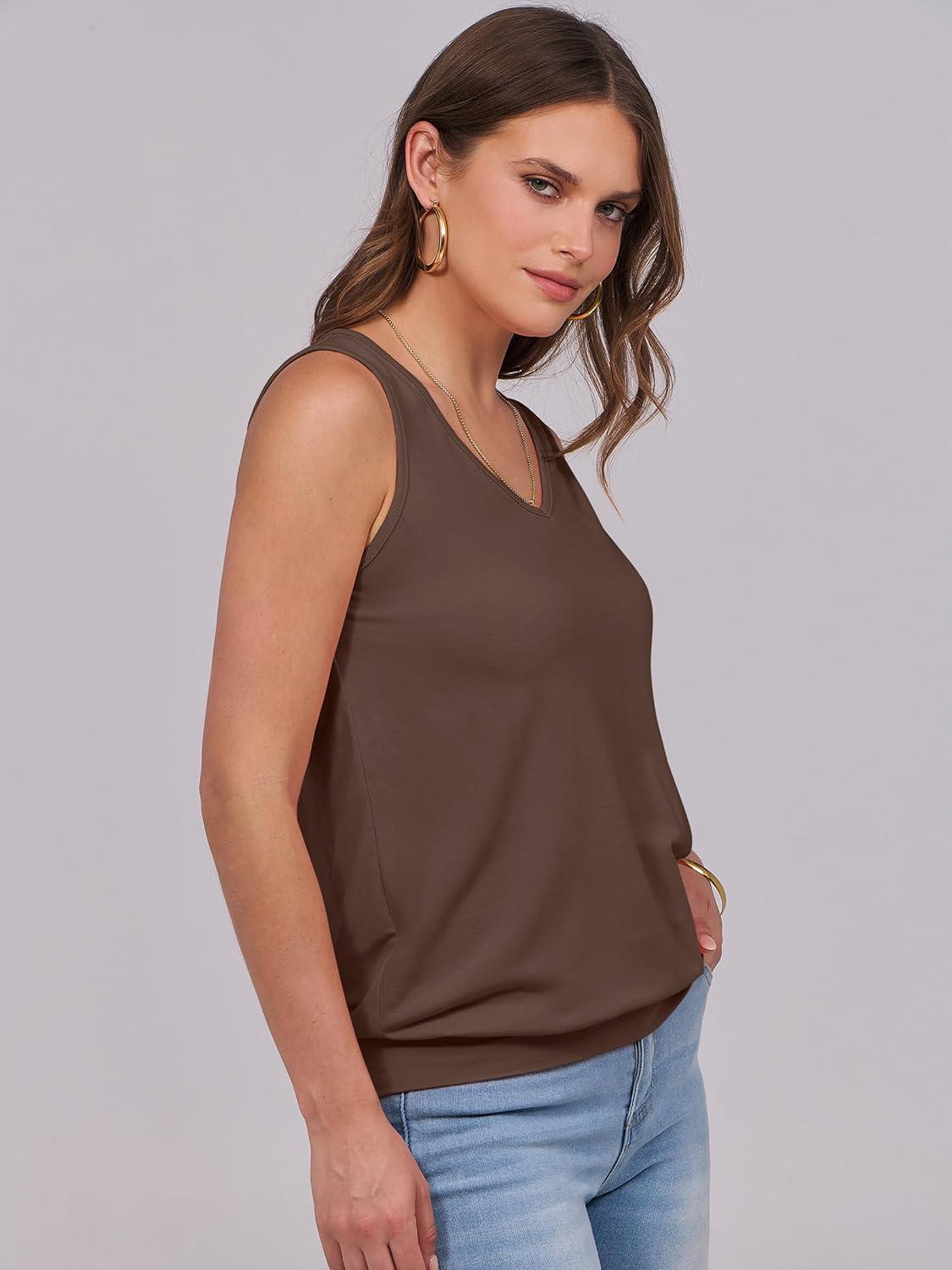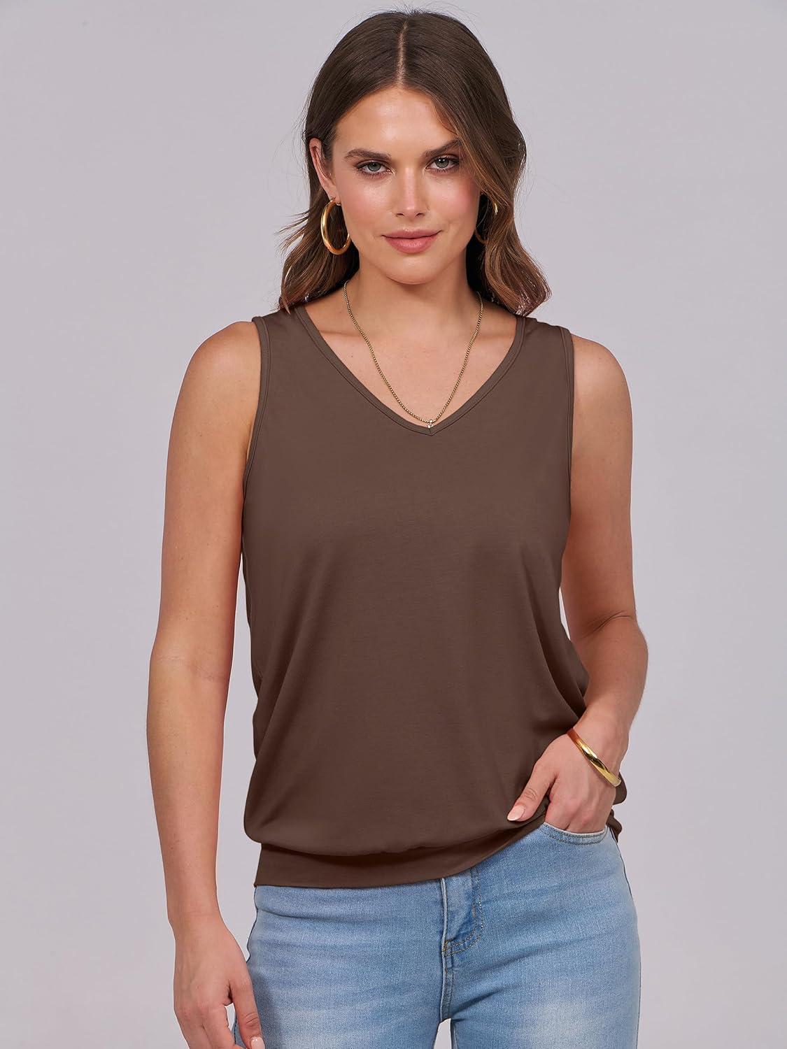 ANRABESS Women Tank Tops Summer V Neck Sleeveless Casual Loose Fit Cute Cami Basic T Shirts Solid Tees 2025 Trendy Outfits(Dark Brown)