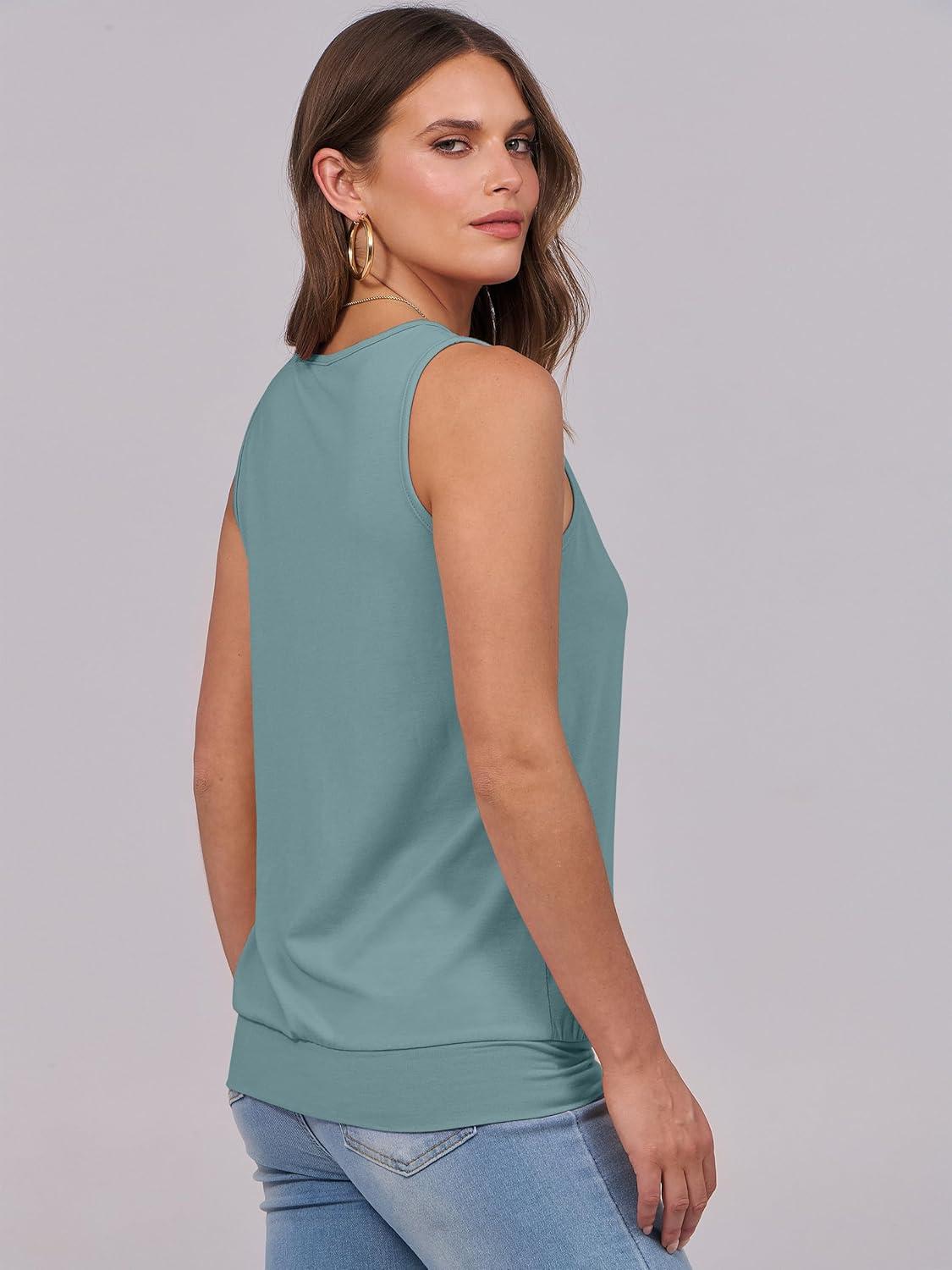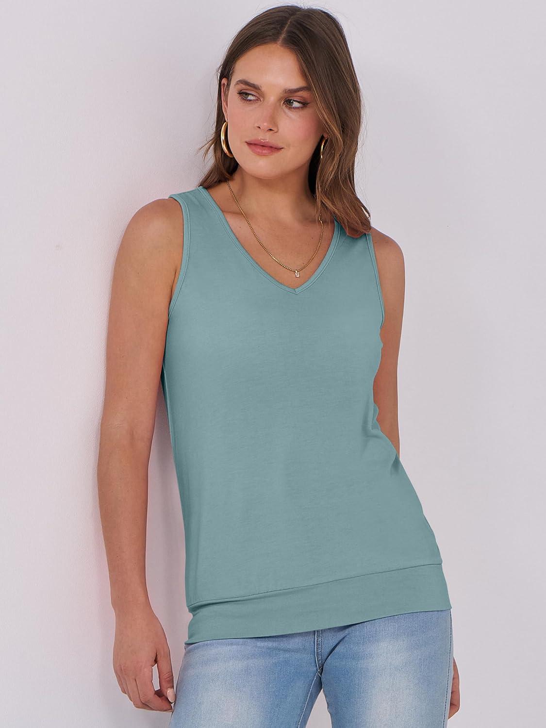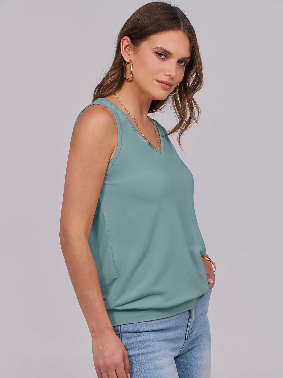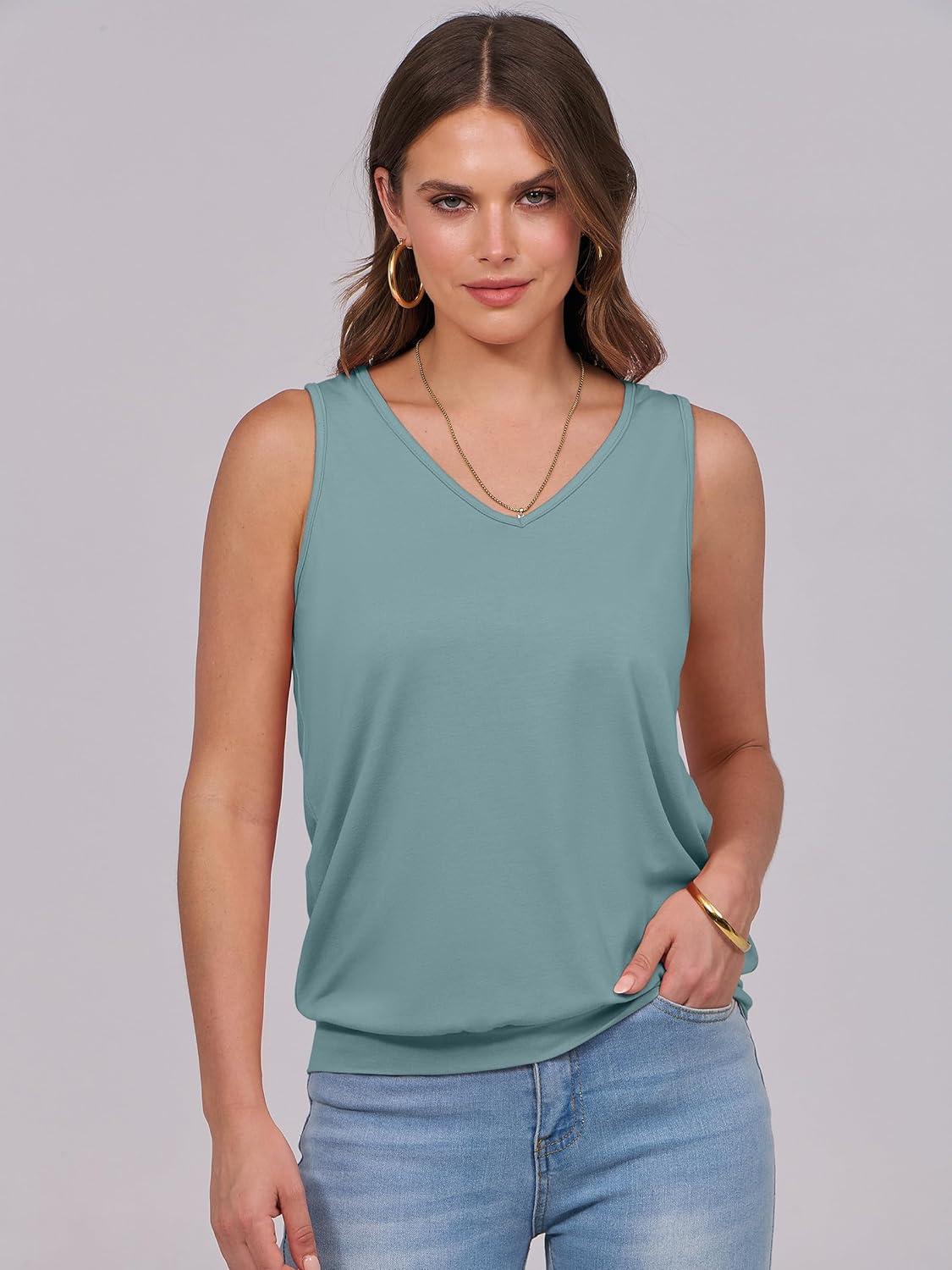 ANRABESS Women Tank Tops Summer V Neck Sleeveless Casual Loose Fit Cute Cami Basic T Shirts Solid Tees 2025 Trendy Outfits(Green Blue)