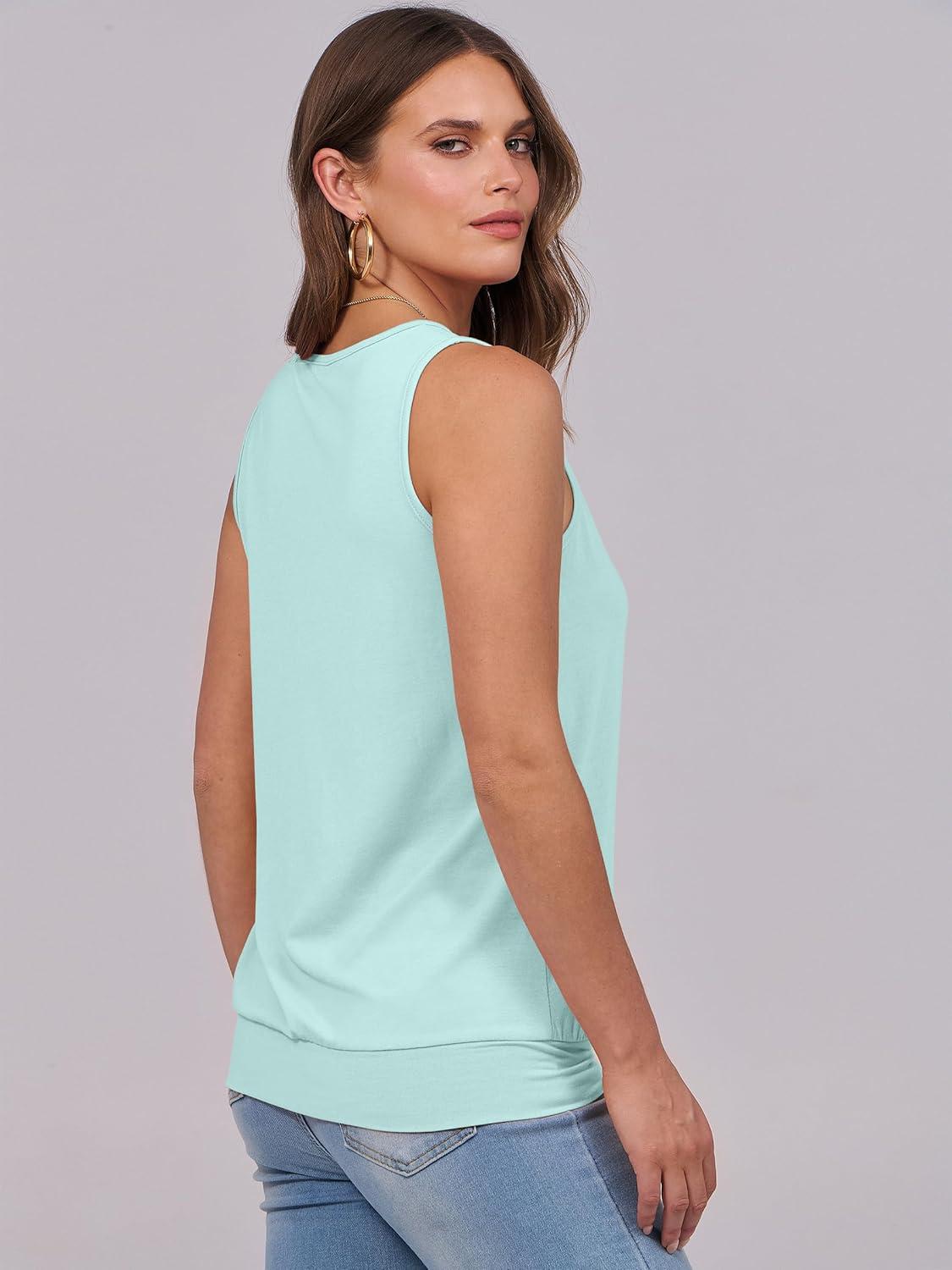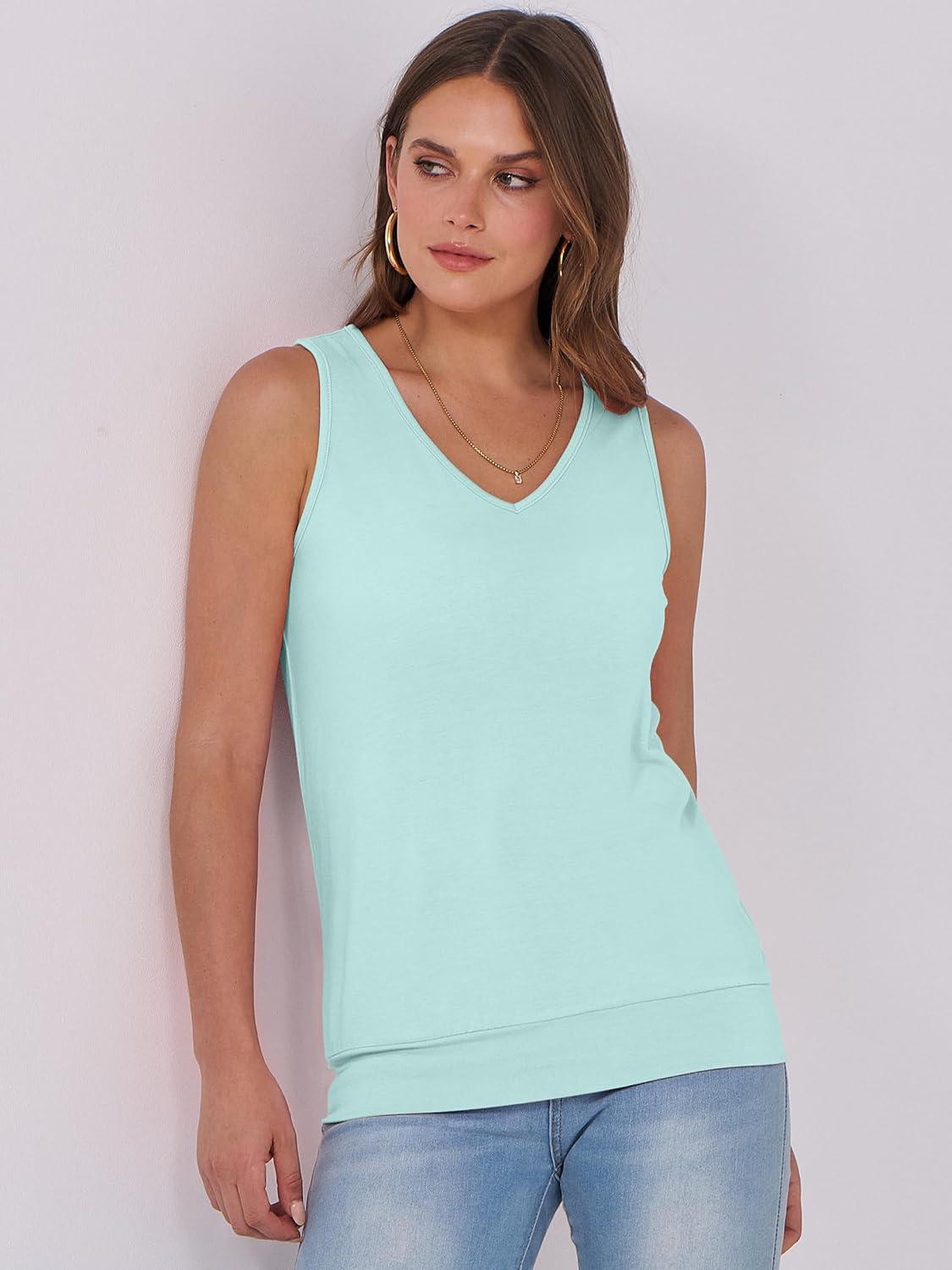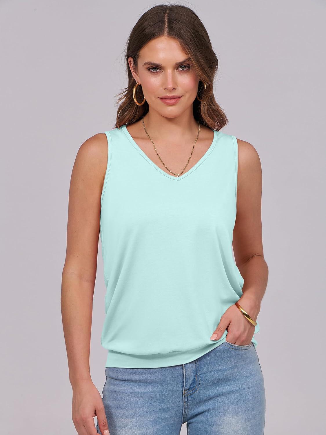 ANRABESS Women Tank Tops Summer V Neck Sleeveless Casual Loose Fit Cute Cami Basic T Shirts Solid Tees 2025 Trendy Outfits(Mint Green)