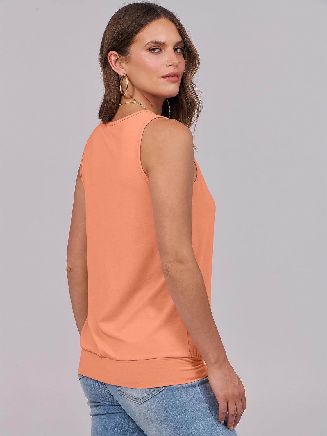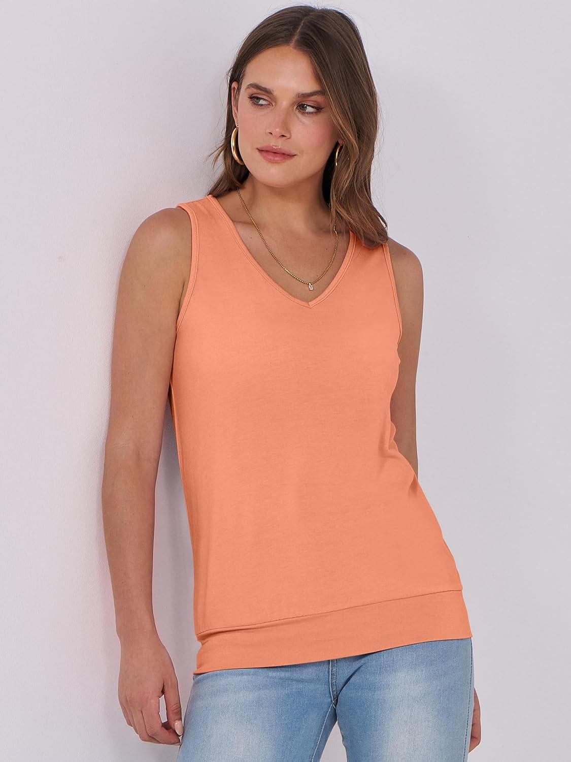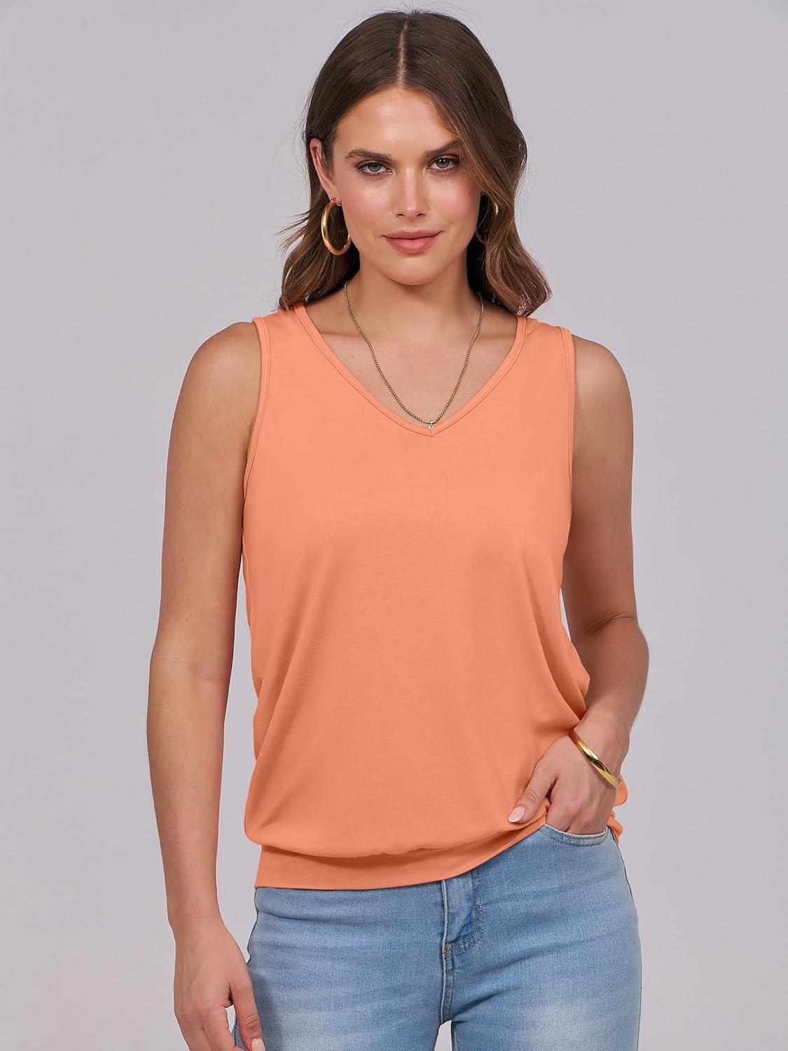 ANRABESS Women Tank Tops Summer V Neck Sleeveless Casual Loose Fit Cute Cami Basic T Shirts Solid Tees 2025 Trendy Outfits(Orange)