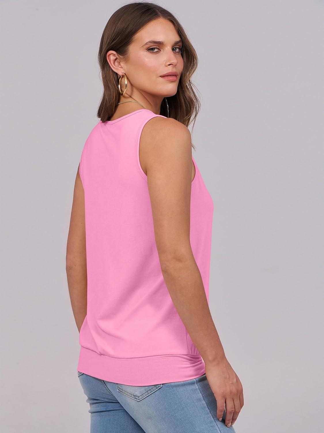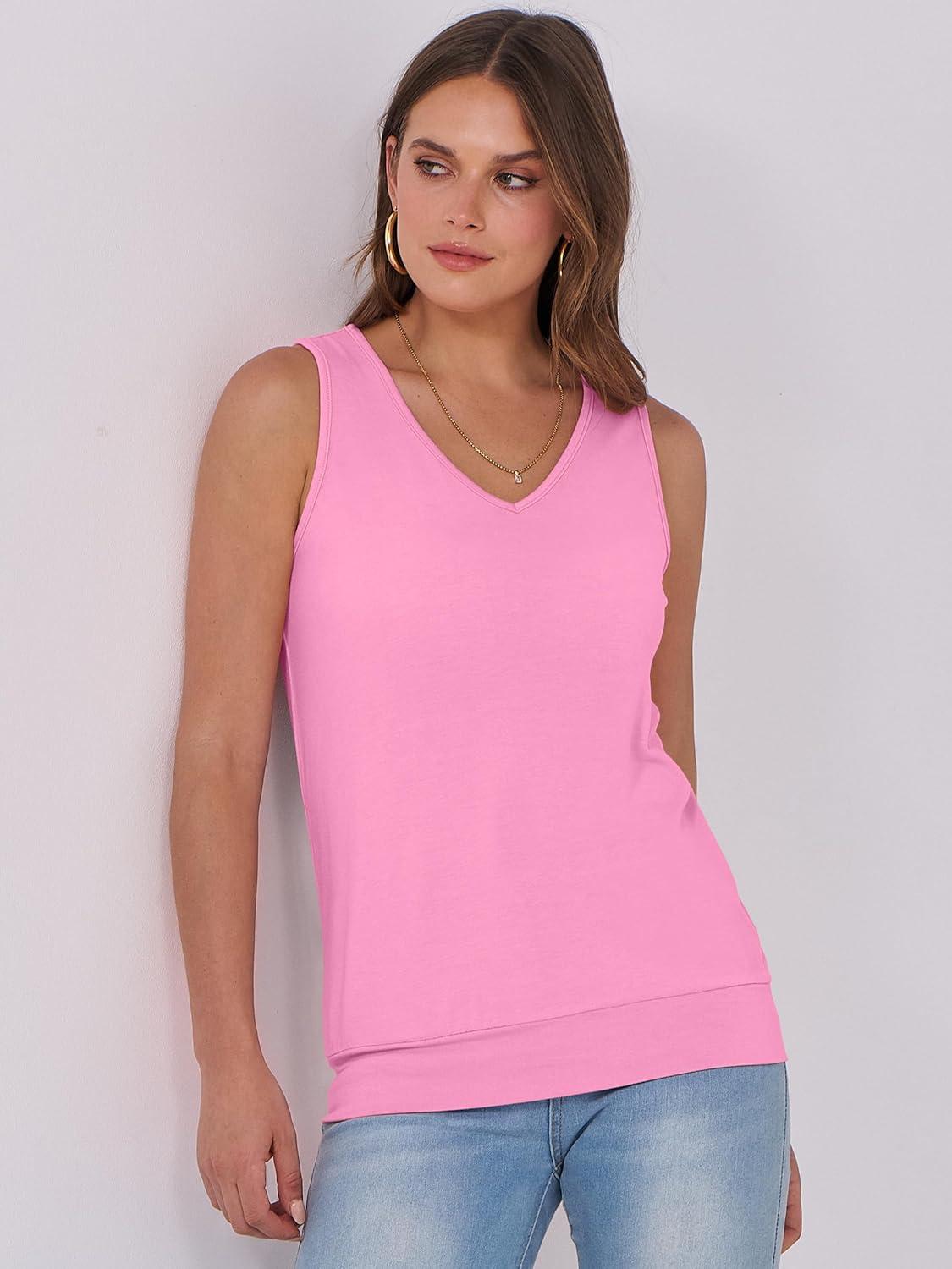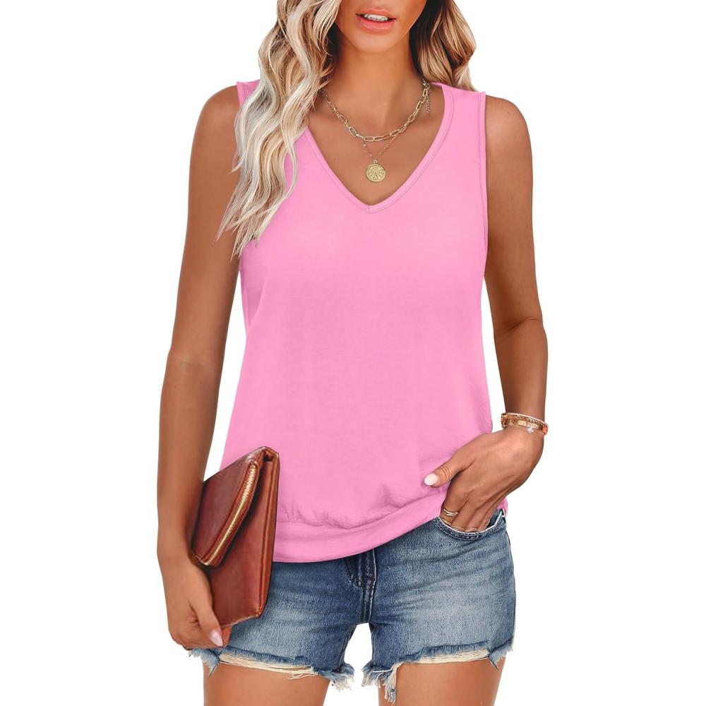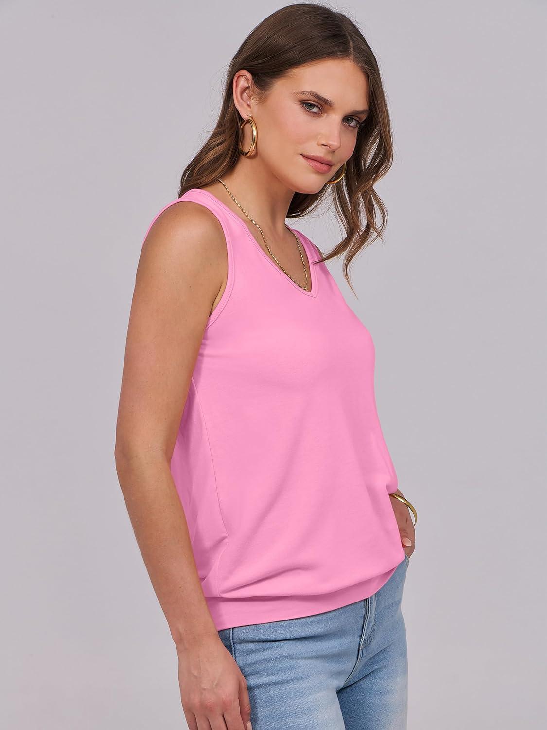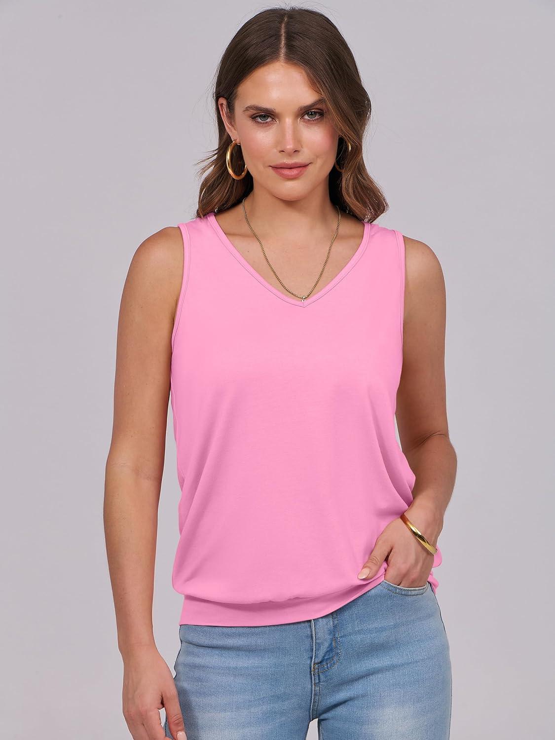 ANRABESS Women Tank Tops Summer V Neck Sleeveless Casual Loose Fit Cute Cami Basic T Shirts Solid Tees 2025 Trendy Outfits(Pink)