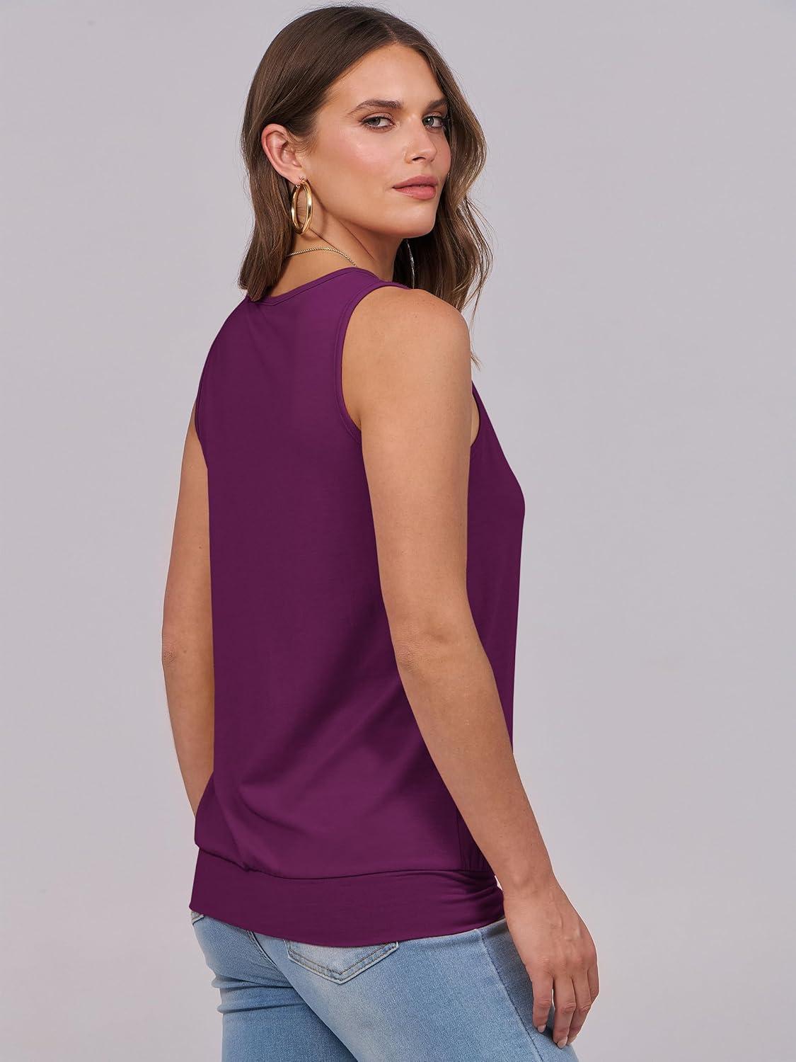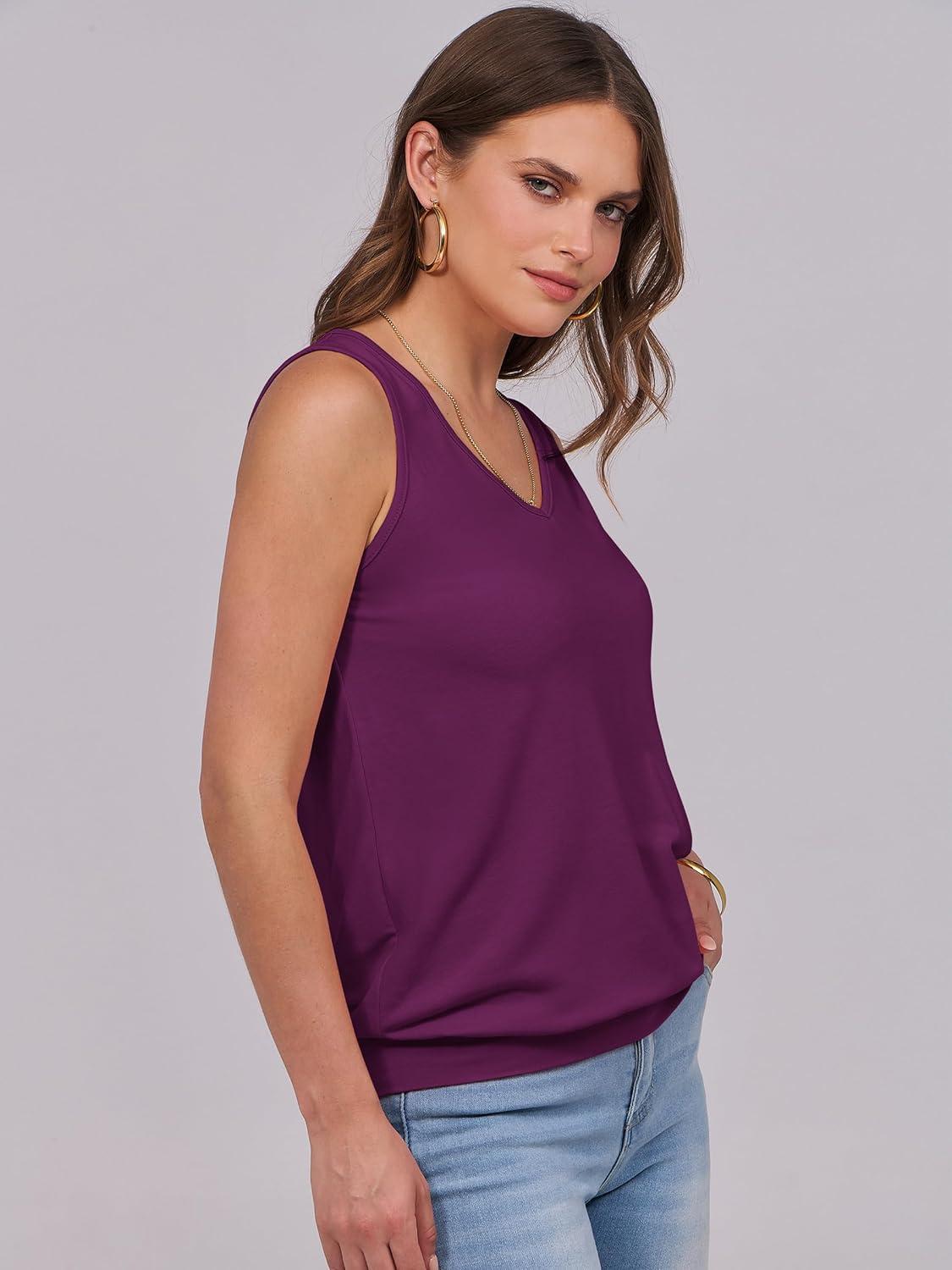 ANRABESS Women Tank Tops Summer V Neck Sleeveless Casual Loose Fit Cute Cami Basic T Shirts Solid Tees 2025 Trendy Outfits(Purple)