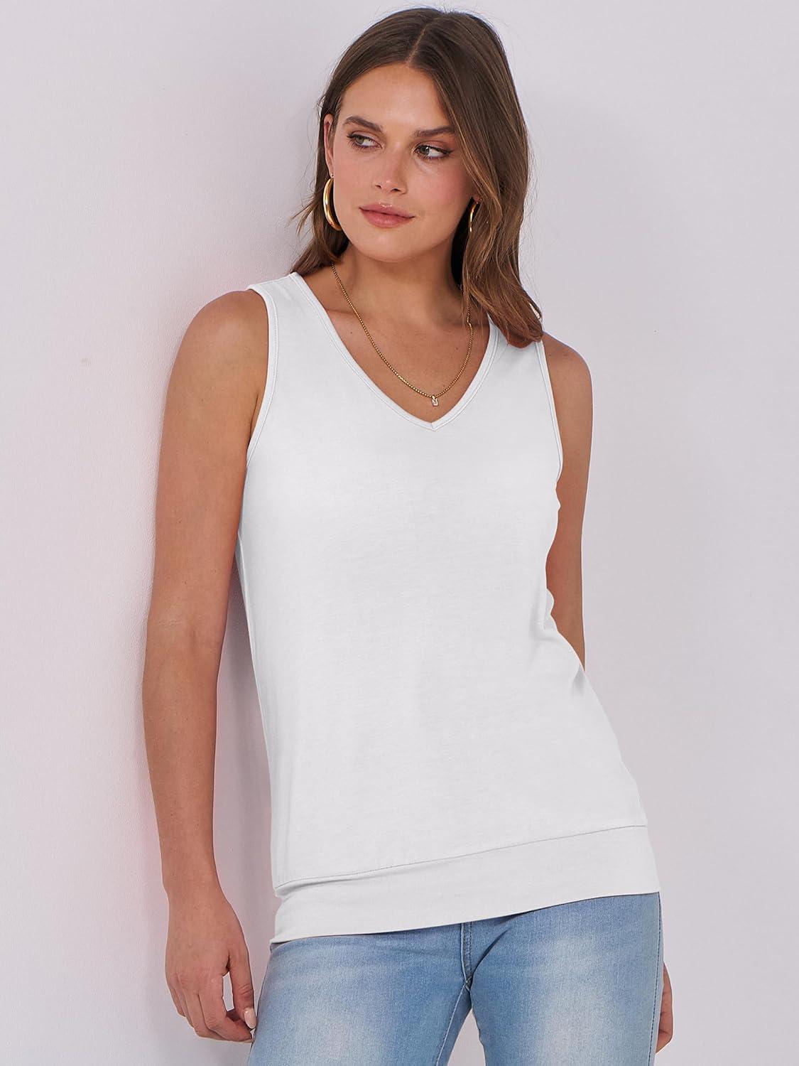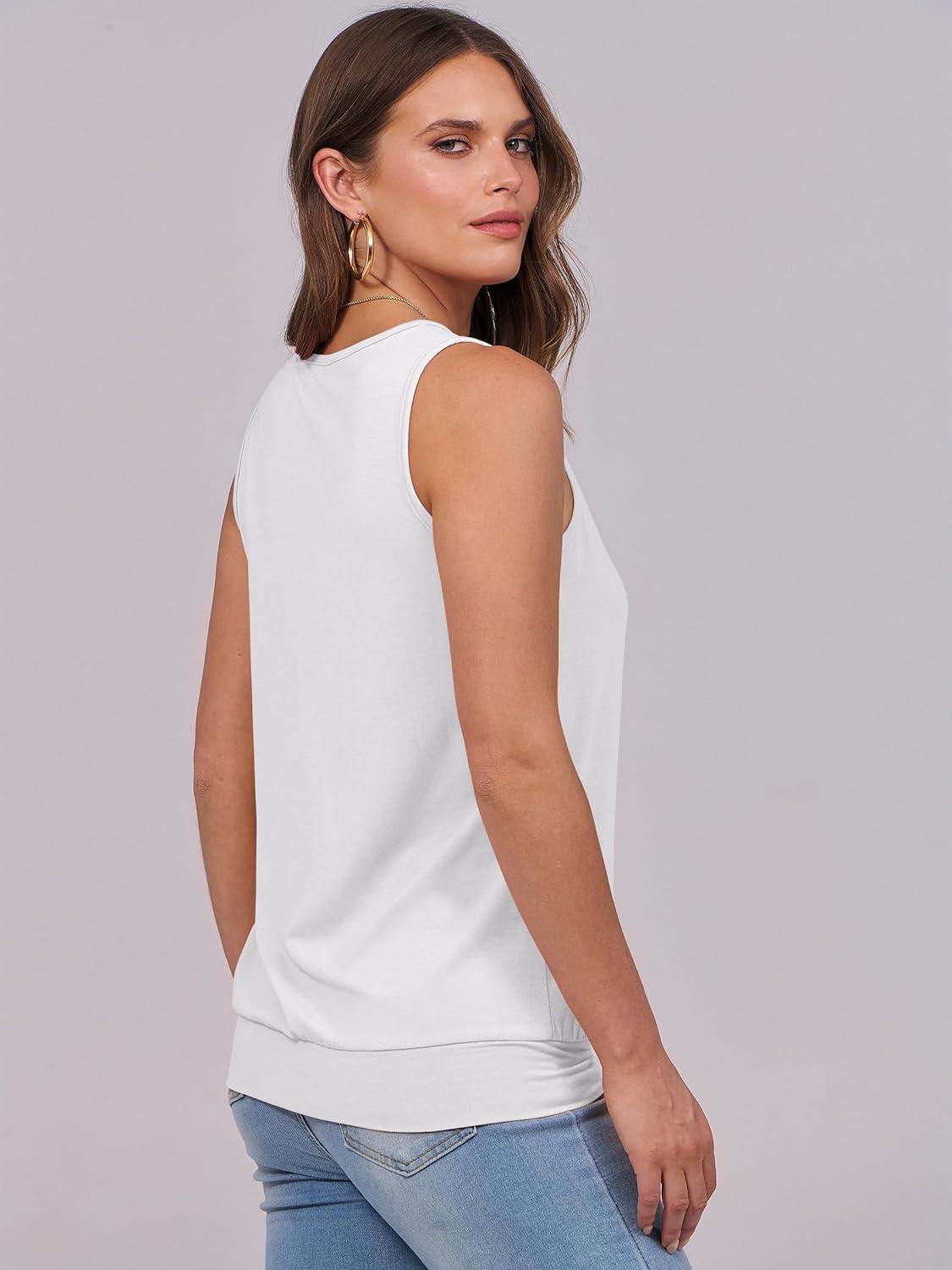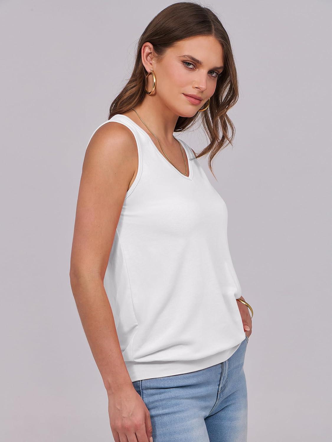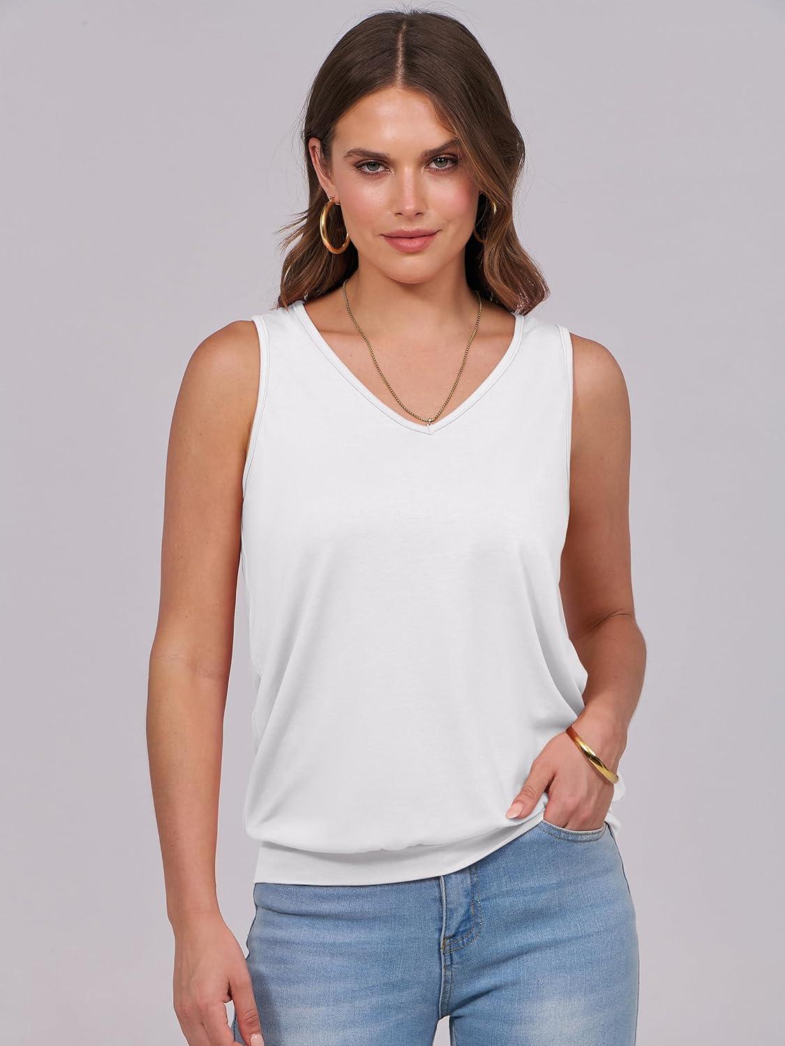 ANRABESS Women Tank Tops Summer V Neck Sleeveless Casual Loose Fit Cute Cami Basic T Shirts Solid Tees 2025 Trendy Outfits(White)