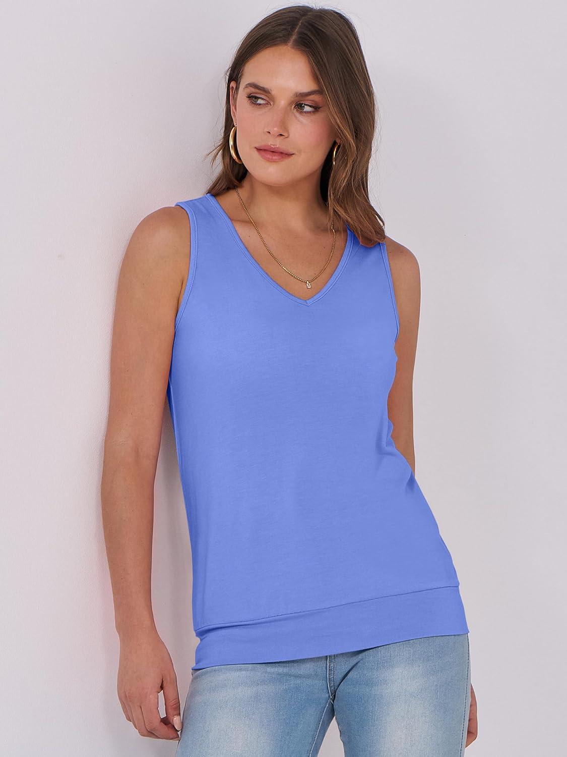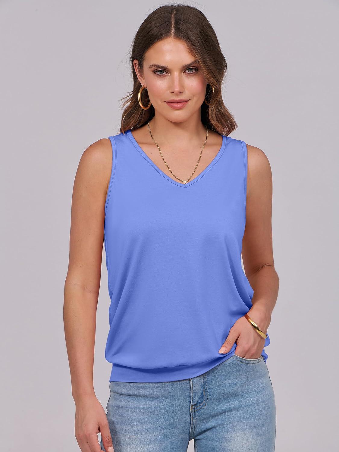 ANRABESS Women Tank Tops Summer V Neck Sleeveless Casual Loose Fit Cute Cami Basic T Shirts Solid Tees 2026 Trendy Outfits(Blue)