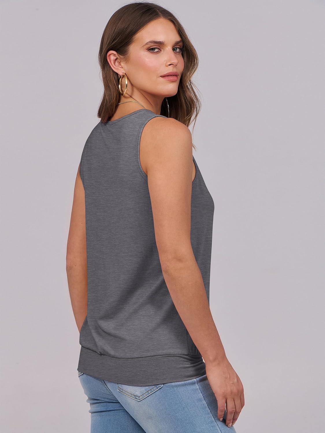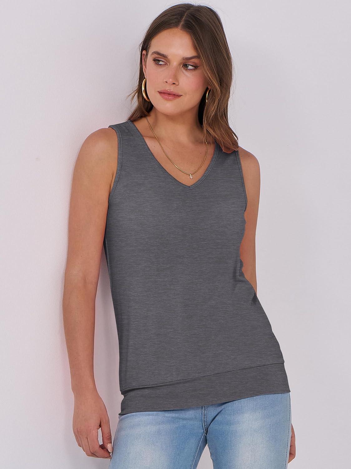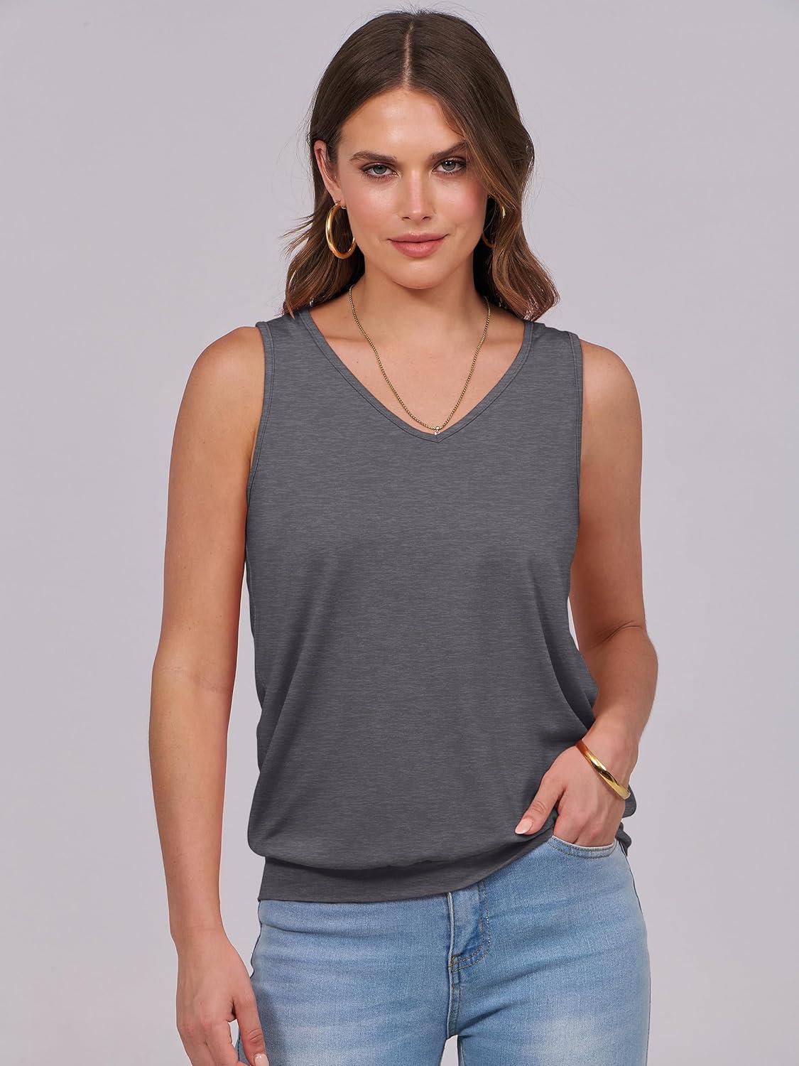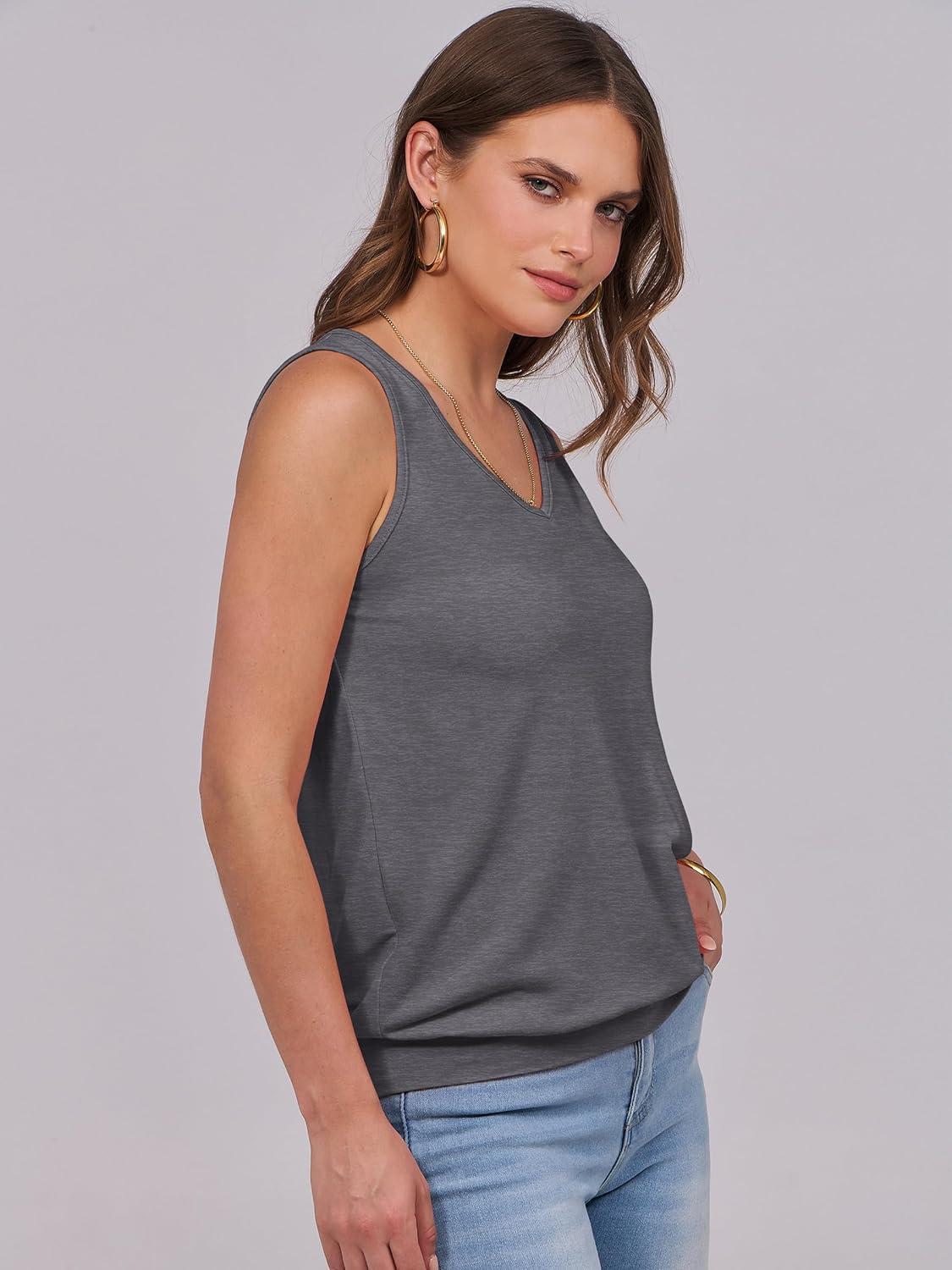 ANRABESS Women Tank Tops Summer V Neck Sleeveless Casual Loose Fit Cute Cami Basic T Shirts Solid Tees 2026 Trendy Outfits(Dark Grey)