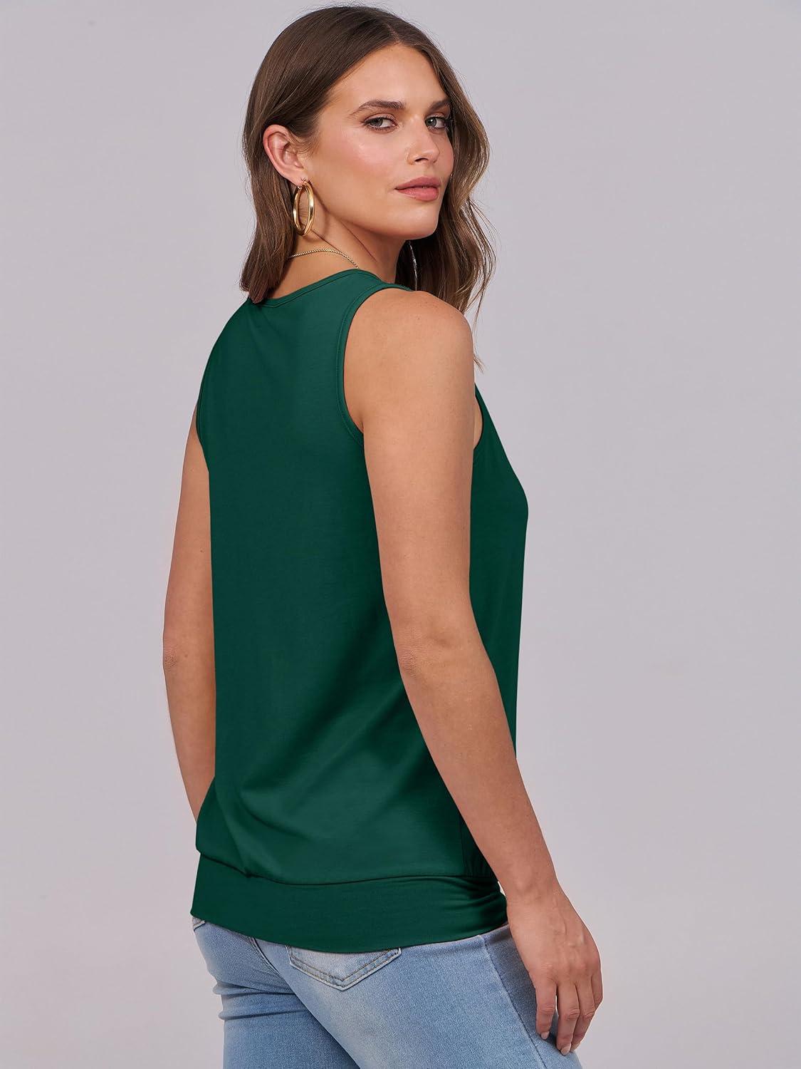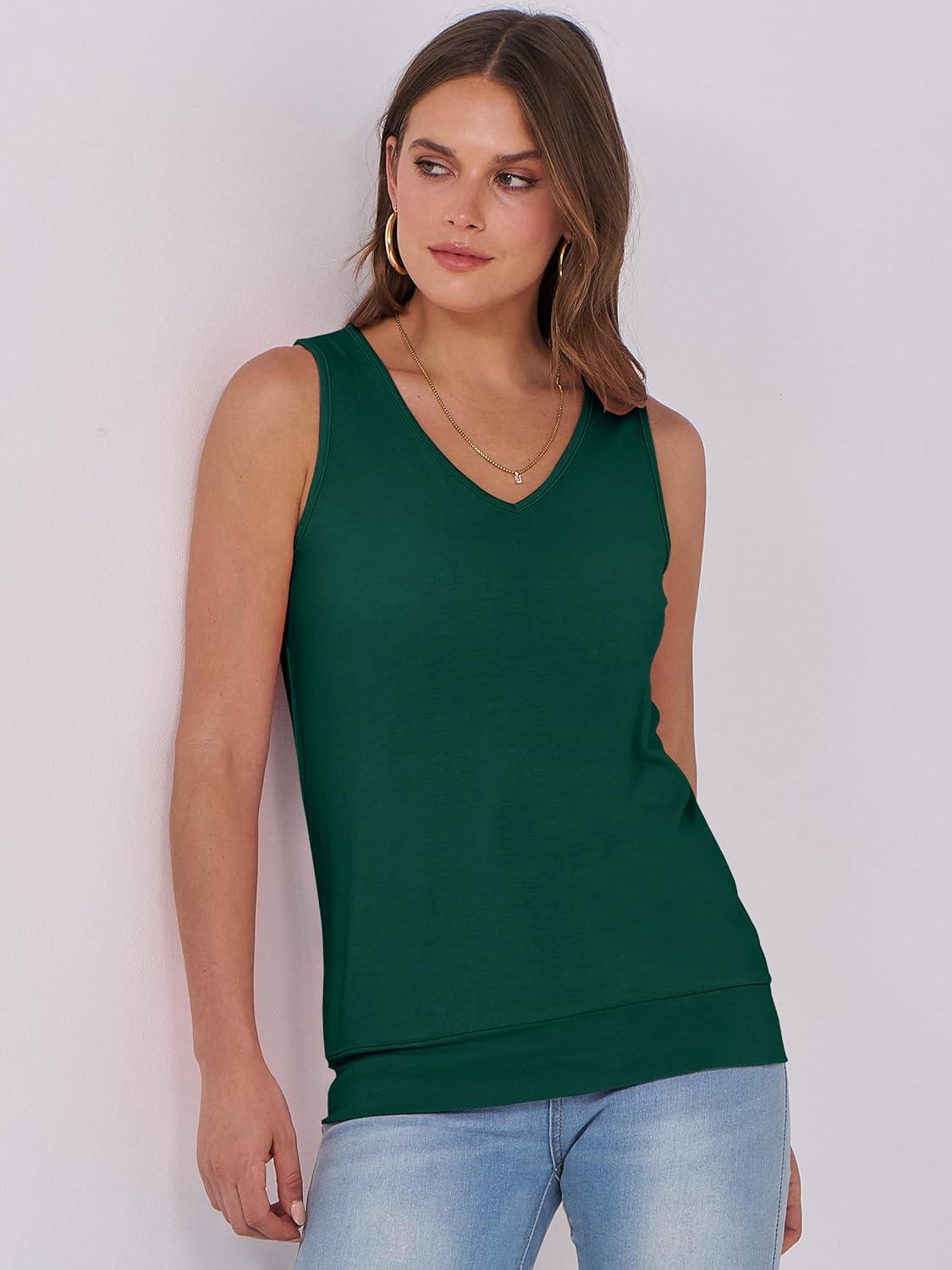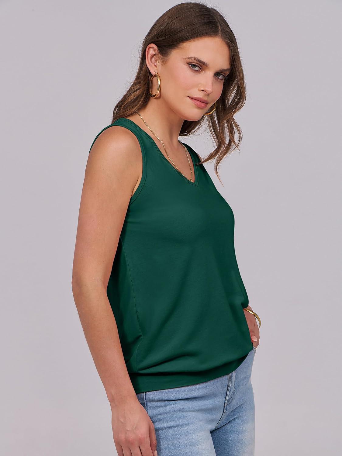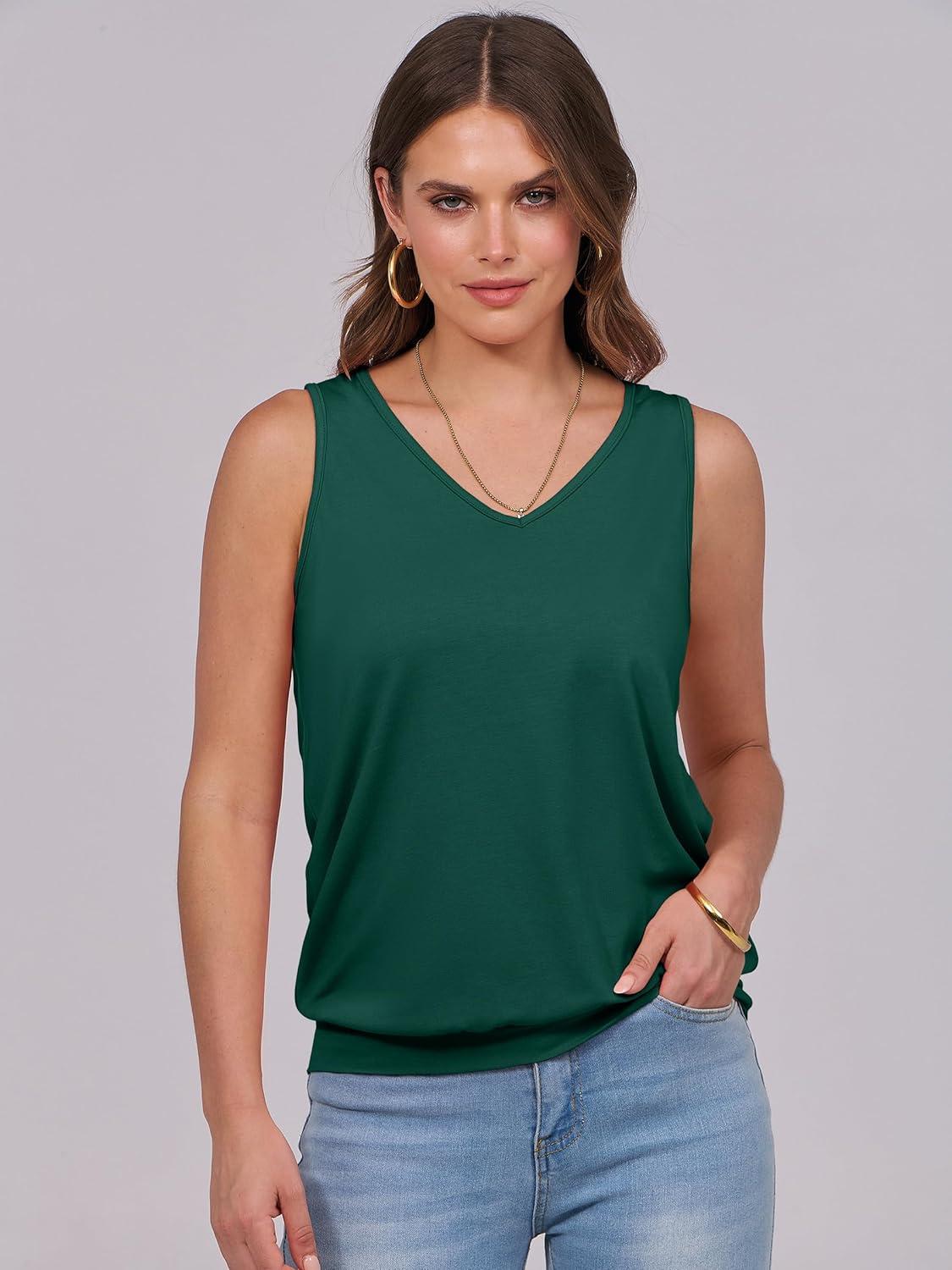 ANRABESS Women Tank Tops Summer V Neck Sleeveless Casual Loose Fit Cute Cami Basic T Shirts Solid Tees 2026 Trendy Outfits(Forest)