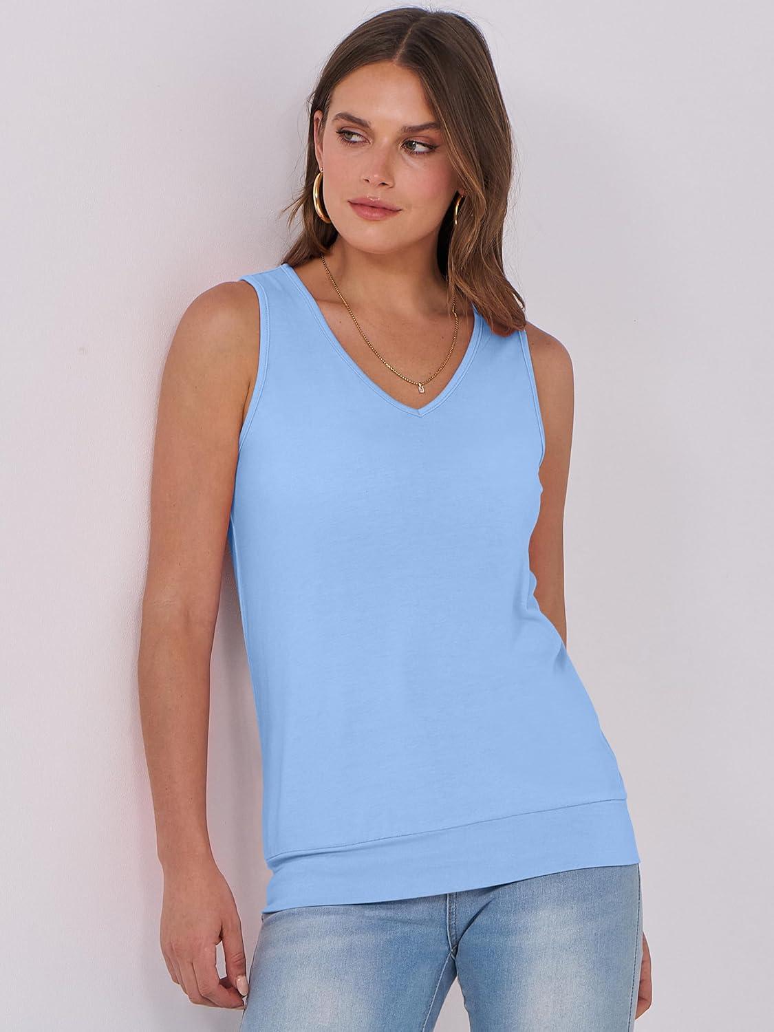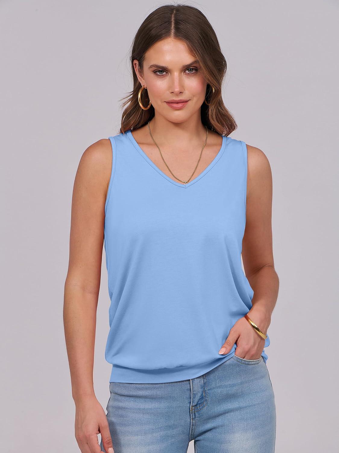 ANRABESS Women Tank Tops Summer V Neck Sleeveless Casual Loose Fit Cute Cami Basic T Shirts Solid Tees 2026 Trendy Outfits(Sky Blue)