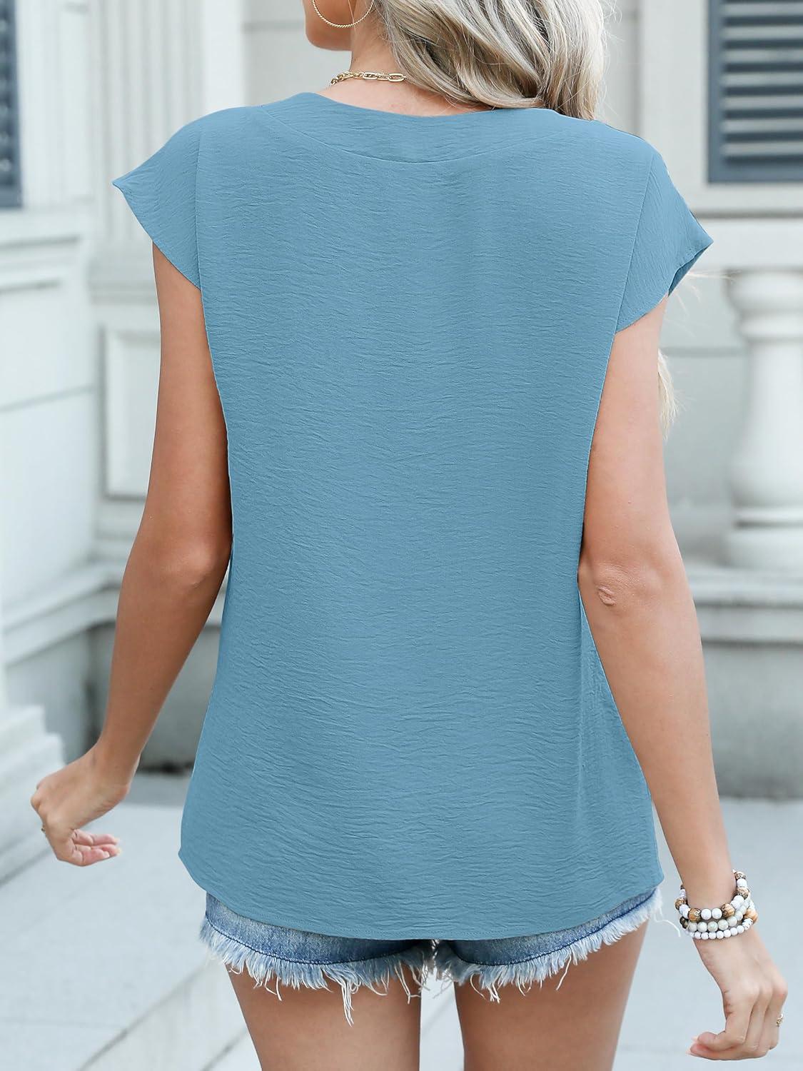 ANRABESS Women Tops Cap Sleeve Textured Dressy Casual V Neck Shirts 2025 Summer Business Work Blouses Outfits(Lake Blue)