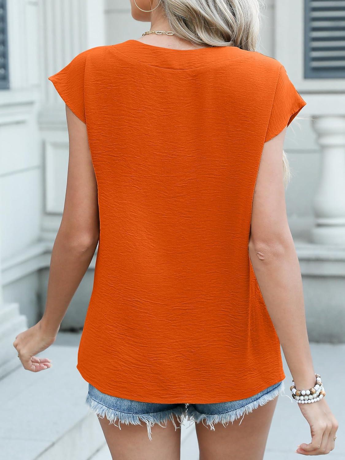 ANRABESS Women Tops Cap Sleeve Textured Dressy Casual V Neck Shirts 2025 Summer Business Work Blouses Outfits(Orange)
