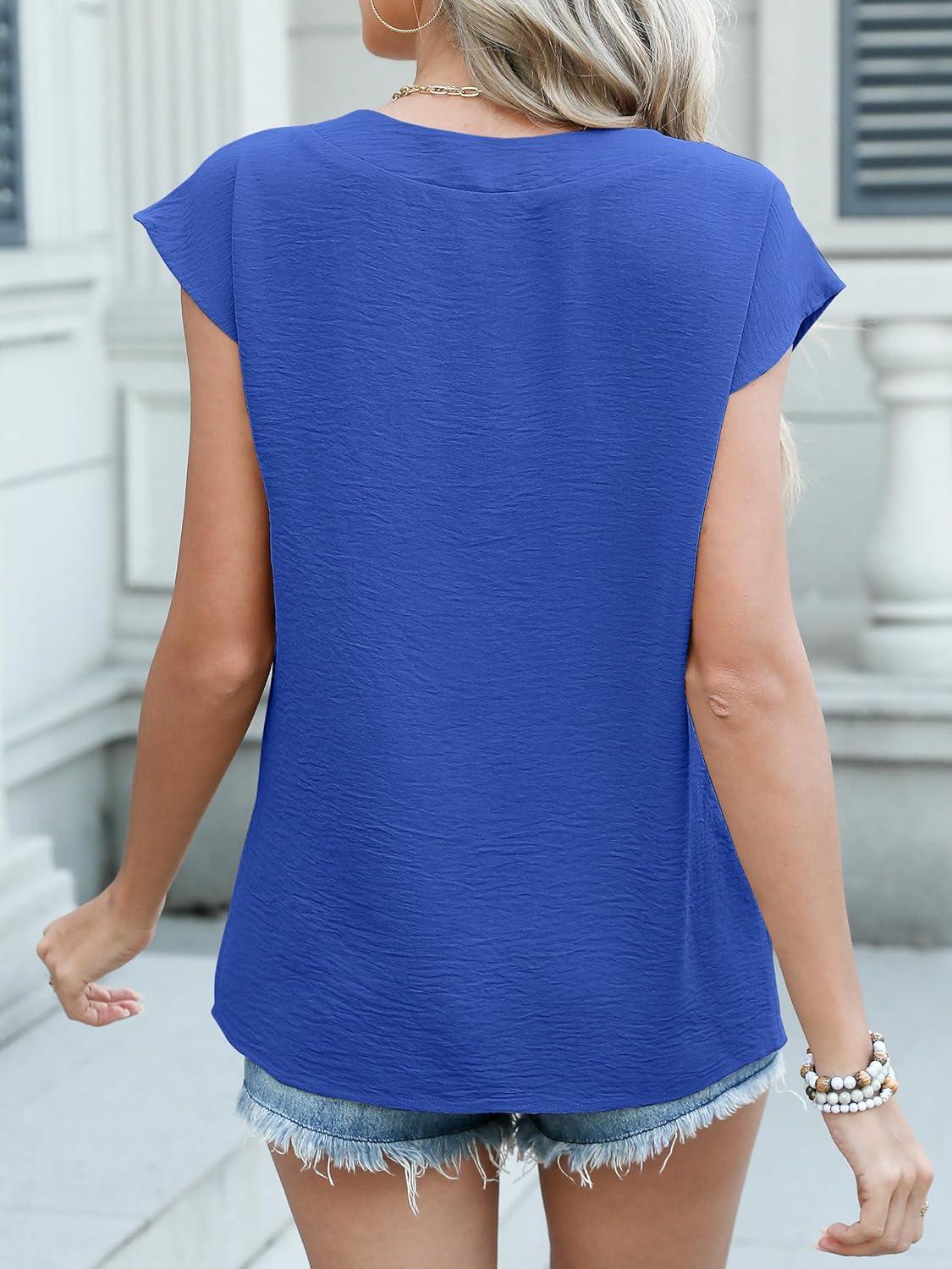 ANRABESS Women Tops Cap Sleeve Textured Dressy Casual V Neck Shirts 2025 Summer Business Work Blouses Outfits(Royal Blue)