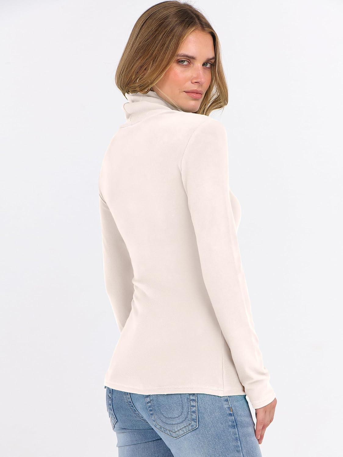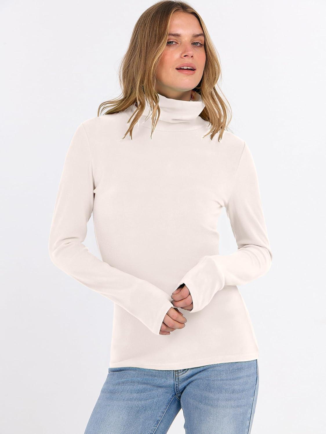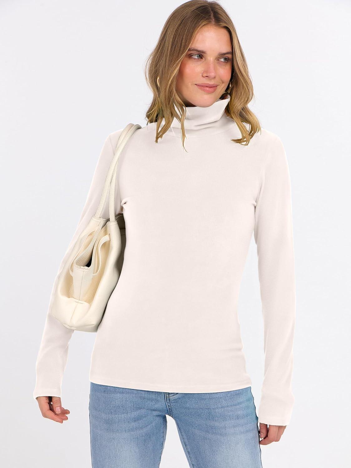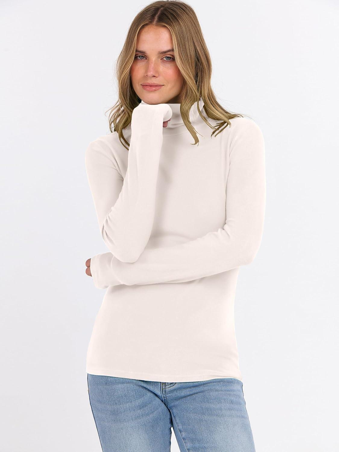 ANRABESS Women Turtleneck Top Long Sleeve Thermal Shirts Slim Fitted Basic Layer 2025 Fall Winter Outfits(Pure White)