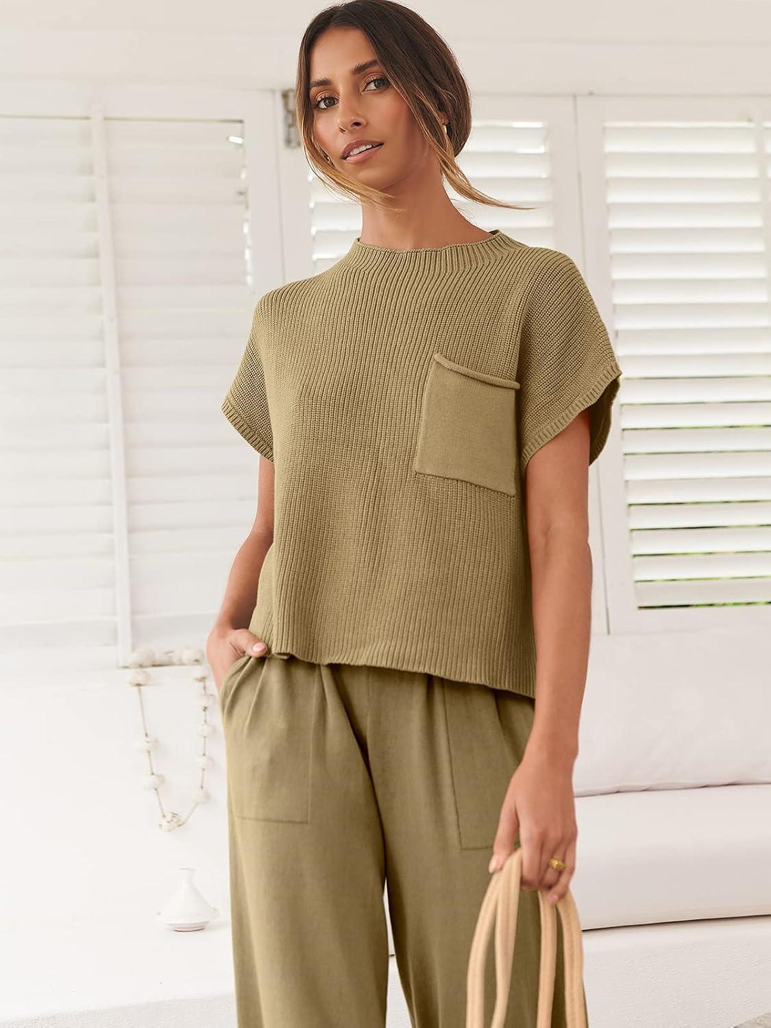Be the first to review “ANRABESS Women Two Piece Outfits Summer Sweater Vest Crop Top Pants Lounge Matching Set Travel Airport Beach Vacation Clothes(Brown)”