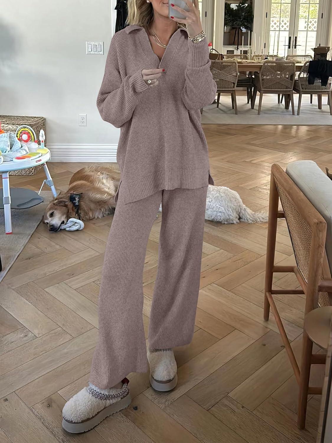 Be the first to review “ANRABESS Women Two Piece Outfits Sweater Sets Lounge Waffle Knit Pullover Matching Wide Leg Pants Tracksuit 2025 Fall Fashion(Camel)”