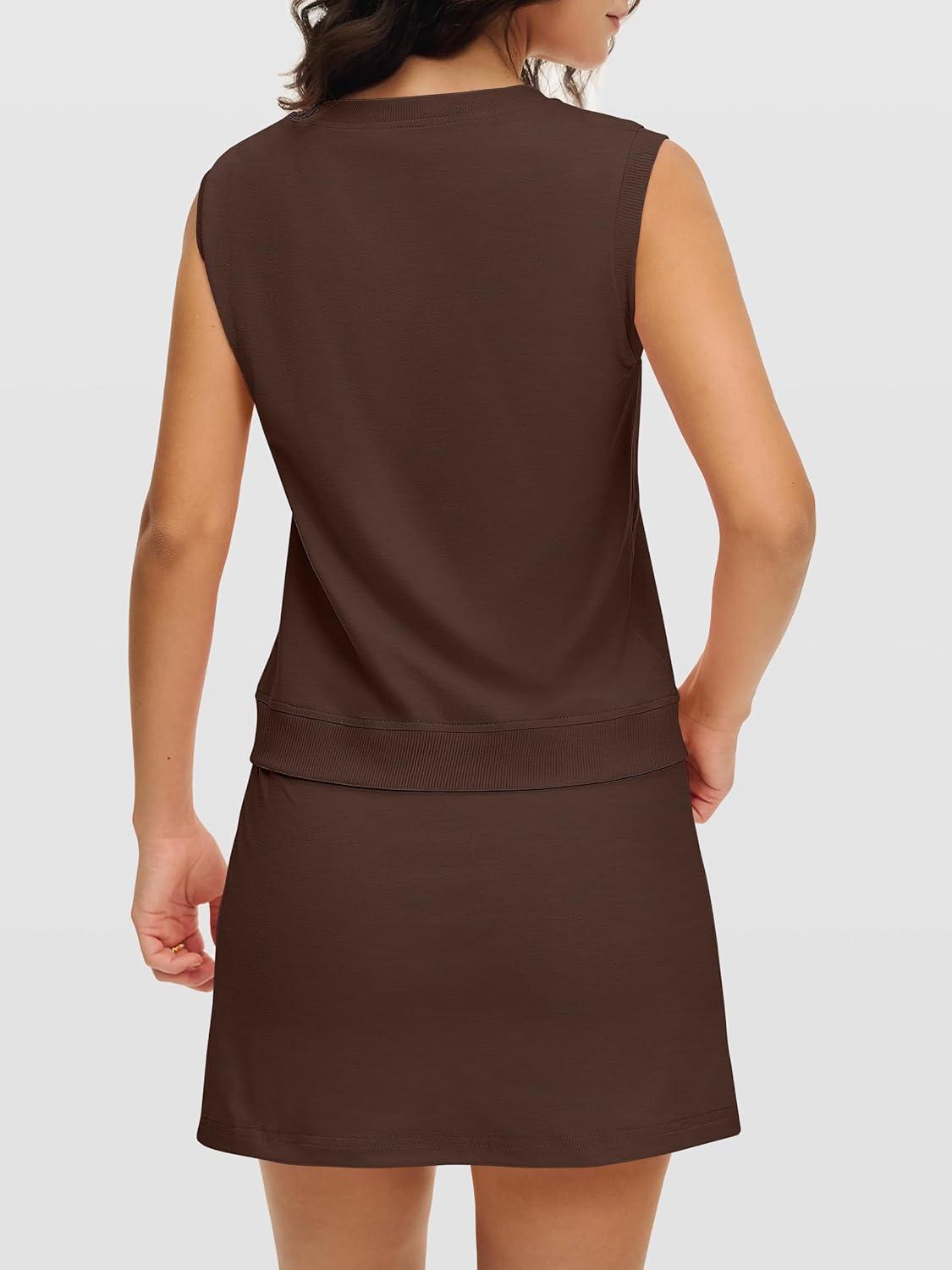 imageANRABESS Women Two Piece Skirt Sets Summer Outfits Athletic Workout Tennis Lined Skort Short Set Travel Vacation ClothesCoffee