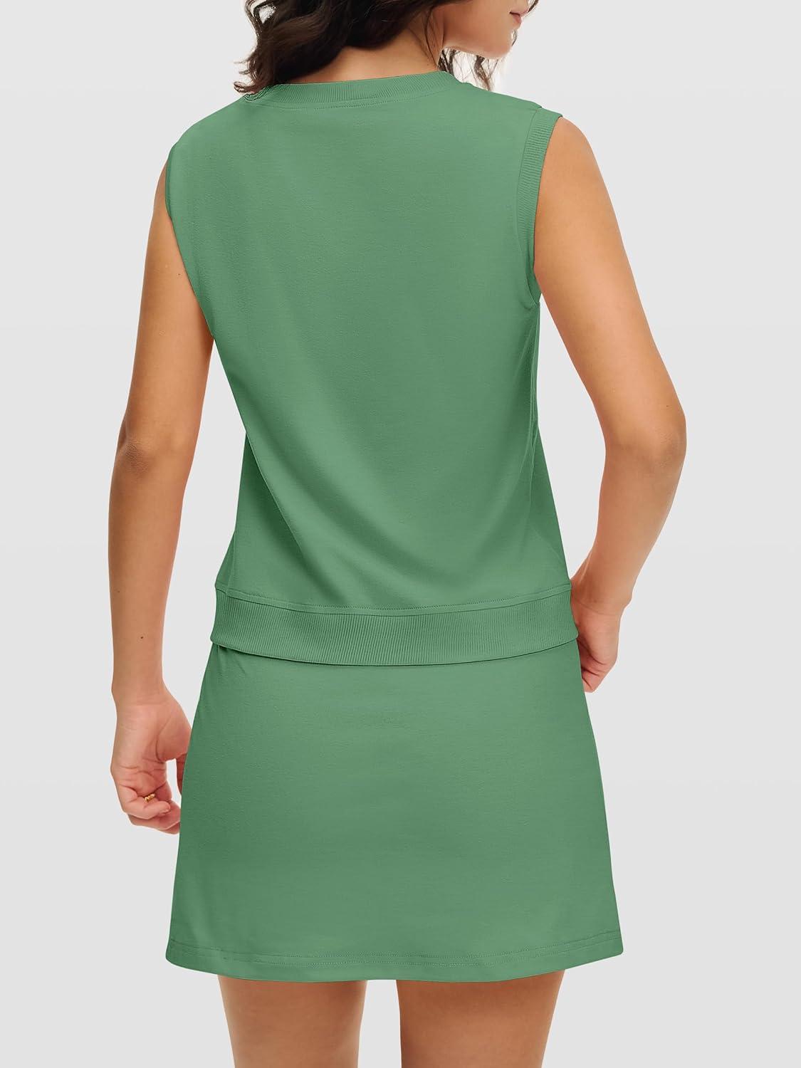 imageANRABESS Women Two Piece Skirt Sets Summer Outfits Athletic Workout Tennis Lined Skort Short Set Travel Vacation ClothesGreen